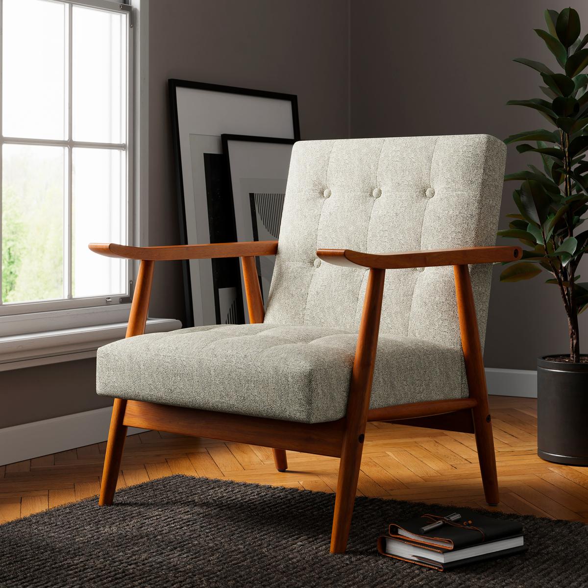 Quinn Buttoned Occasional Chair, Textured Weave Dark Cream (Natural)