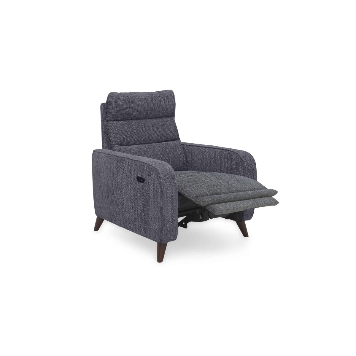 Cool and curvaceous, our Quinn range of power sofas and armchairs makes comfort more stylish. Here, relaxed mid-century inspired design meets well-engineered comfort. Ergonomic, space-saving power elevating footrests and neat, narrow arms ensure that sofas and armchairs fit perfectly in any space. And the pocket spring and foam-filled seat cushioning is the ultimate in comfort and support. Choose 100% leather upholstery in several leather grades and finishes, or beautifully soft fabric upholstery. The handmade Quinn range comprises sofas, armchairs and storage footstools and is only available at Furniture Village. Treating yourself? Consider this stylish and exceptionally comfortable power reclining armchair with power footrest and pocket spring seat cushioning. Why you'll love it This on-trend fabric power recliner armchair has your name on it. Cool, curvaceous and exceptionally comfortable. Power elevating footrest and narrow arms for maximum relaxation in minimum space. Mid-century, off-the-floor style with angled wooden feet. Pocket spring and foam-filled seat cushioning for comfort and support. Choice of high-quality upholstery options including velvets and woven fabrics. This chair is also available without the recliner. Handmade exclusively for Furniture Village. This fabric power recliner chair is part of our Quinn range. What you need to know Medium comfort level. Seat suspension: zig zag spring. Seat cushioning: pocket coil spring, high resilience foam. Cushioning is fixed. Back support: zig zag spring. Back cushioning: fibre. Cushioning is fixed. Arm cushioning: foam. To maintain back cushion fullness, be sure to plump daily. Arms, back and feet are removable. Please allow time for new recliners to ease. Minor gaps are necessary to ensure ease of recliner motion and may be exaggerated depending on floor type. Some fabrics can show wear on areas of more use or in direct sunlight. Flattening and shading of heavy wear areas on pile fabrics is unavoidable. Clean regularly using a soft brush or vacuum with the curtain attachment. Deal with any spills promptly. Professional cleaning advised for oil- and grease-based stains. Please read our upholstery care guide for more advice.