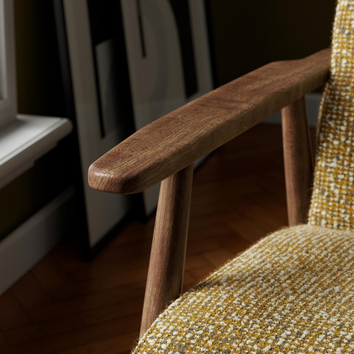 * Wooden frame * Textured upholstery * Curved arms * Foam filled seat This chair combines soft sherpa fabric in a vibrant ochre shade, giving your space a cosy yet modern flair. Its simple, fashionable design fits into many settings, from a relaxed living room to more dynamic commercial spaces. Comfortable and stylish, it’s the perfect chair for anyone looking to inject a bit of comfort and character into their interiors.