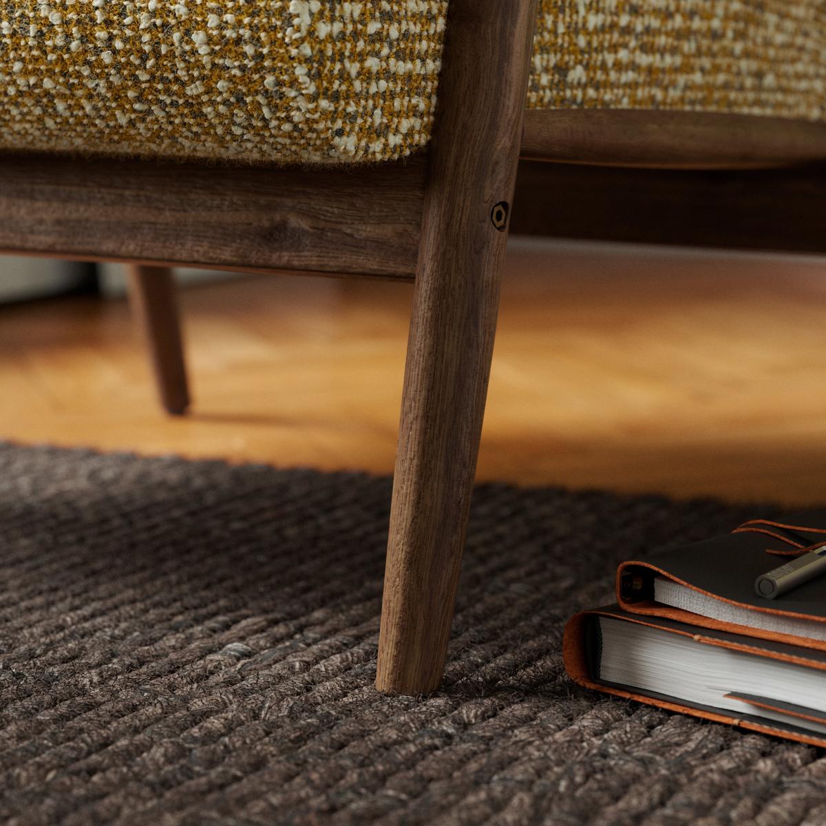 I’m a big fan of the Quinn sherpa chair for its perfect balance of textural interest and clean, mid-century lines. The knotty oak frame warms up the boucle-style upholstery, making it a versatile piece for both Scandi-inspired minimalism and more eclectic, layered schemes. To style it, tuck it into a reading nook with a cosy wool throw and a slimline side table for your coffee and books. It also pairs nicely with deep jewel-tone cushions or alongside indoor plants to pick up on the soft greenish hue of the fabric.