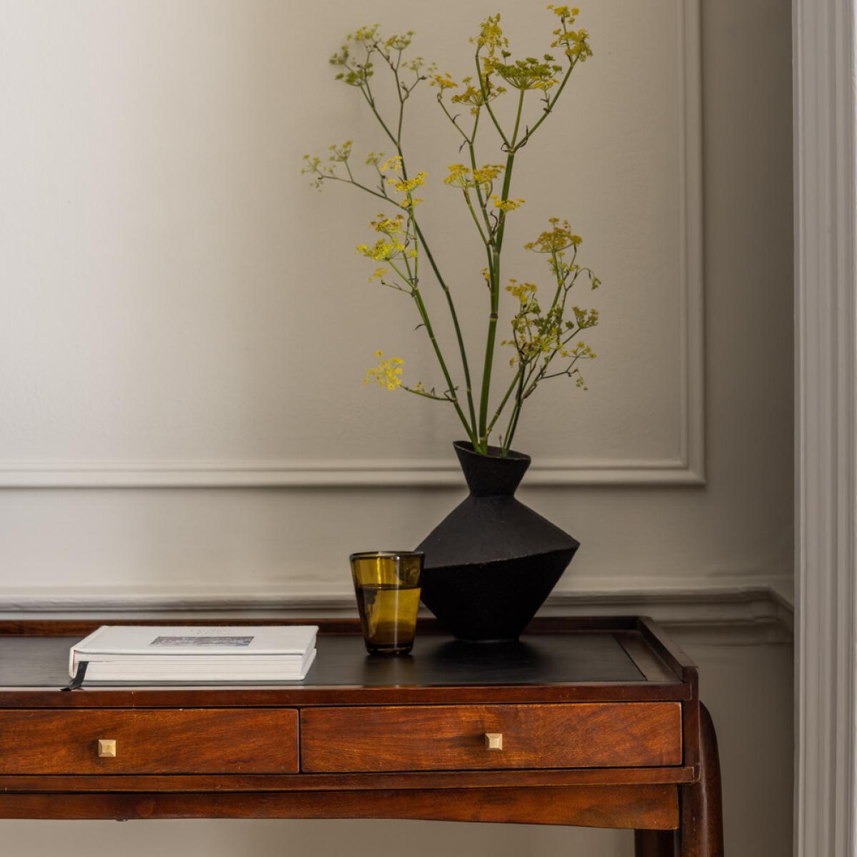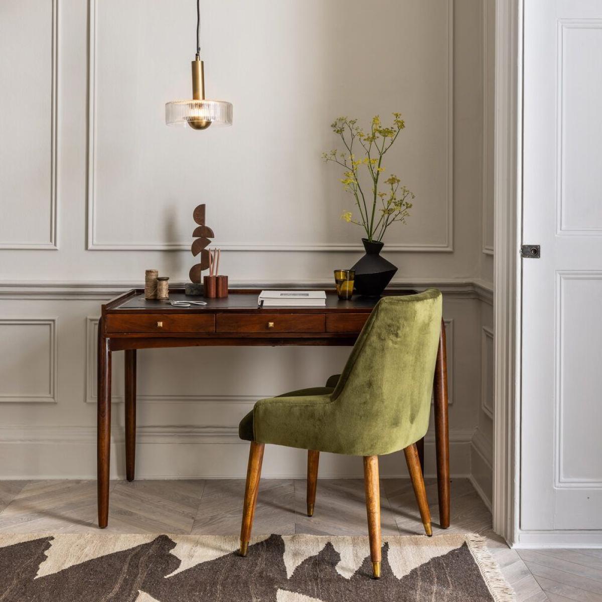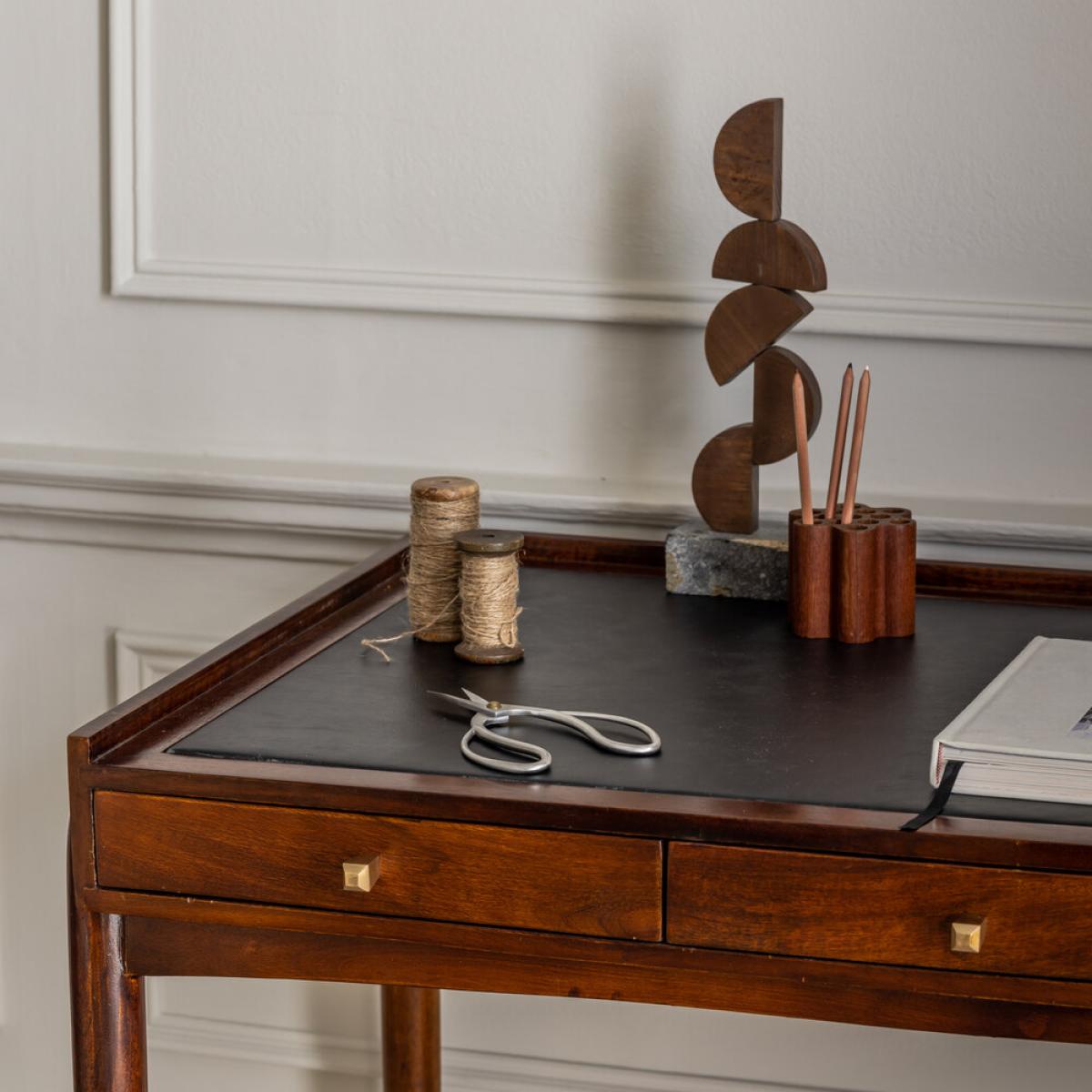 Expertly crafted from sustainable mango wood our Quinn Writing Desk is a perfect spot for studying or working from home. The desk has three drawers for keeping papers and stationery tidy, a gorgeous soft black leather top for that classic desk appeal, and a lovely vintage patina. Inspired by the mid-century modern designs of the period from 1933 to 1965, this is a classic desk that you will own for many years to come. Finish the mid century look with our Quinn range that includes a sideboard, bedside table, drawers, console table, drinks cabinet, coffee table and mirrors.