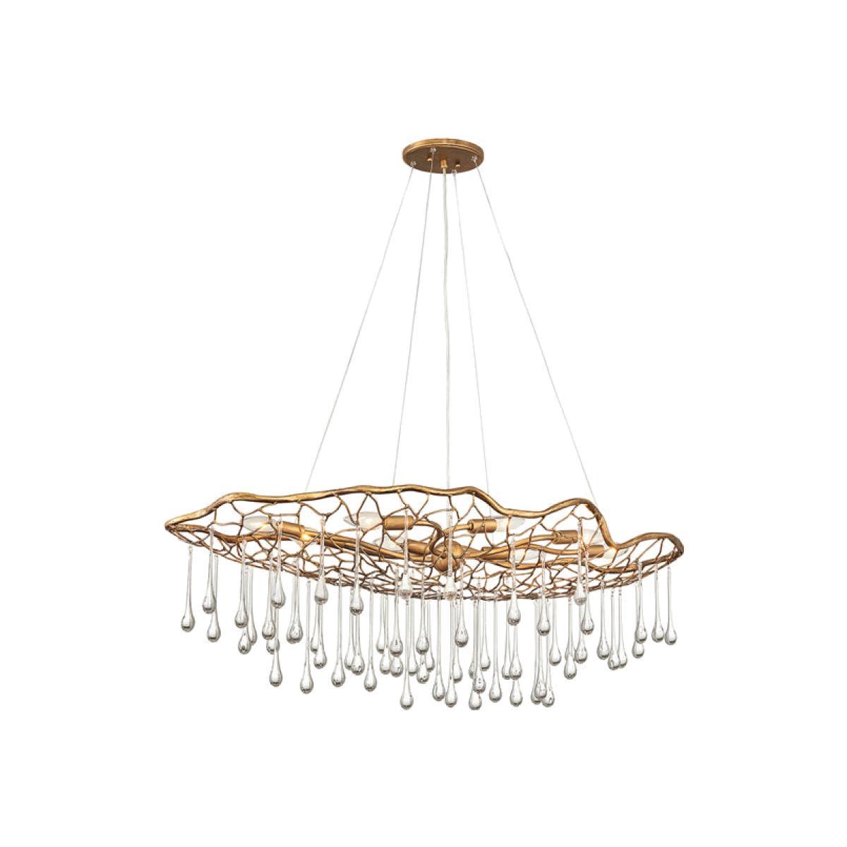 Artistry truly melds with imagination in this spectacular Laguna 8-light chandelier from Quintessentiale. This fabulous chandelier evokes the sight of a hand-thrown fishing net glistening with droplets as it is slowly raised from the lagoon with eight burnished gold fittings laying horizontally like fish within it. There is also something Salvadore Dali or Lewis Carroll about this dreamy chandelier. When illuminated, the light plays through the crystal droplets adding to the delightful effect. The Laguna is a show-stopping centrepiece that will seem to float in the air above your dining table, lounge or ballroom. There are 4, 6 and 8 light versions of this chandelier. *Moot Trading Ltd is not a lender and acts only as an introducer. The credit product is provided by Klarna Bank AB (publ). Credit is only available to permanent UK residents aged 18 and over, subject to status. Terms and conditions apply. Please note that the following products are not regulated by the FCA: Pay in 30 days and Pay in 3 instalments. Read More.