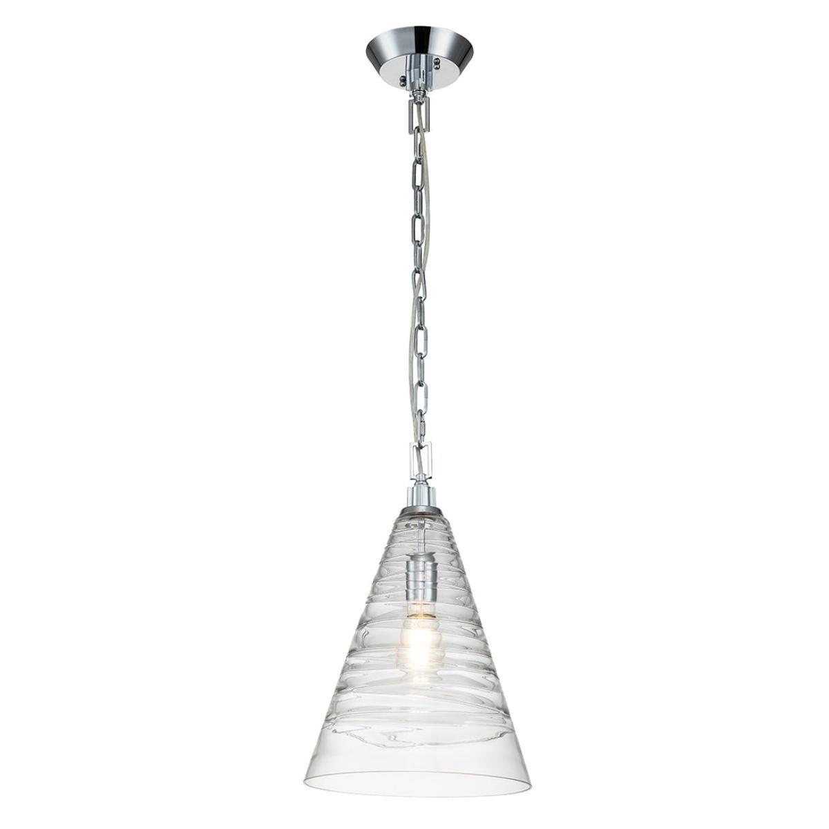 The Quintiesse Elmore 1 Light Pendant in Polished Chrome adds a touch of artisanal elegance to your living room. This fixture features Clear Candy glass, achieved through a multi-step process of wrapping small rods of glass around the shade to create a textured, vibrant surface that subtly conceals the light source and refracts light for a wonderful sparkle. The Elmore pendant collection from Feiss offers two classic profiles, a cone or cylinder, allowing you to choose the perfect shape for your space. Its high-quality steel and aluminum construction ensure durability and long-lasting beauty. Whether used as a single focal point or grouped for a dramatic effect, the Elmore 1 Light Pendant enhances the overall aesthetic of your home. Experience the perfect blend of craftsmanship and contemporary design with this exceptional lighting solution. Trust in Quintiesse for quality and style that elevate your living spaces, providing both functional lighting and a stunning visual statement. Additional Information: Product Finish: Polished Chrome Shade Colour:Clear decorative Assembly Required?:Yes - Electrican installation advised Bulb Included: No Bulb Quantity: 1 Bulb Type: E27 Max Wattage: 60W . Height Adjustable:On Installation Power Source: Mains Voltage Dimmable: N/A IP Rating: N/A Minimum Drop Length: 594mm Maximum Drop Length: 2151mm Dimensions: H: 46 cm x W: N/A cm x D: N/A cm x Dia: 29.5 cm