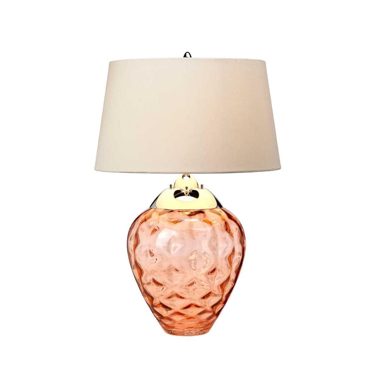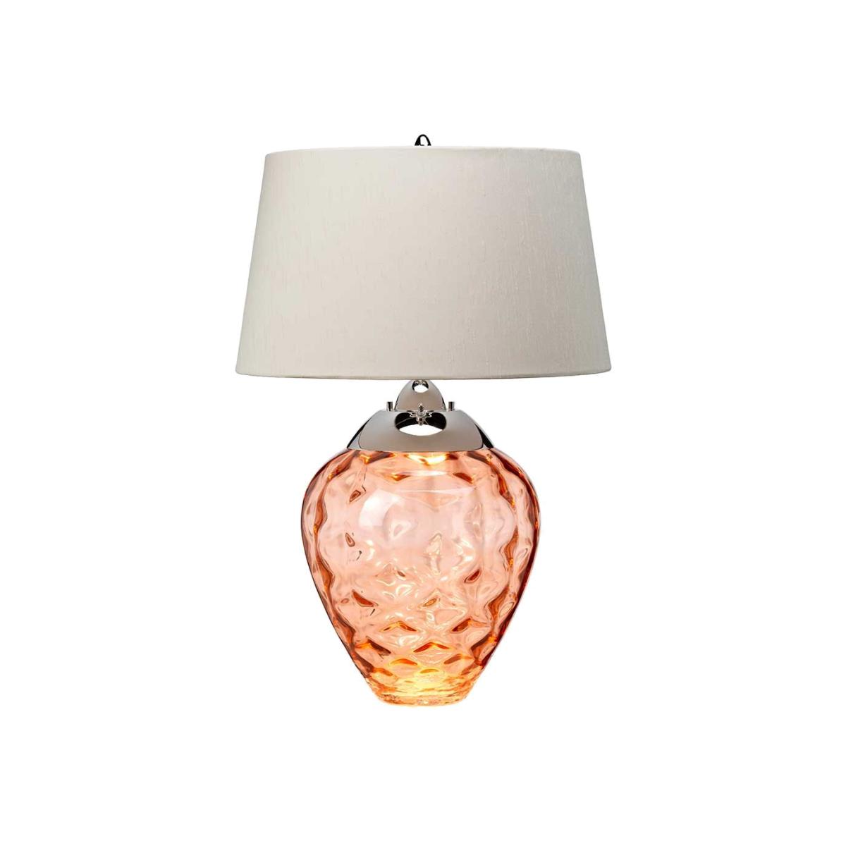 Quintiesse Samara Table Lamp - Salmon: The Quintiesse Samara Table Lamp in Salmon combines aesthetic elegance with practical functionality. This exquisite lamp features a textured blown glass base that adds a unique visual appeal to your living space. The classic polished nickel metal-work enhances its sophisticated look, while the beautiful hand-made fabric shade adds a touch of luxury. The lamp is equipped with a 4-way switch, allowing you to control the light sources for both the shade and the glass base independently. This versatility ensures you can create the perfect ambiance for any occasion. The GU10 bulb is supplied, ensuring you have everything you need to set up and enjoy this stylish lamp right away. Perfect for those who appreciate meticulous craftsmanship and thoughtful design, the Samara Table Lamp is more than just a lighting fixture; it's a statement piece that adds character and charm to any room. Its blend of high-quality materials and exceptional finish underscores its value, offering a premium look without compromising on affordability. Additional Information: Product Finish: Polished Nickel Shade Colour:Scallop (taupe) Assembly Required?:Yes - Electrican installation advised Bulb Included: 1 x 7W LED GU10 Bulb Quantity: 1 Bulb Type: E27 Max Wattage: 60W . Height Adjustable:No Power Source: plug Dimmable: Not Dimmable IP Rating: N/A Minimum Drop Length: N/A Maximum Drop Length: N/A Dimensions: H: 71.5 cm x W: N/A cm x D: N/A cm x Dia: 45.7 cm