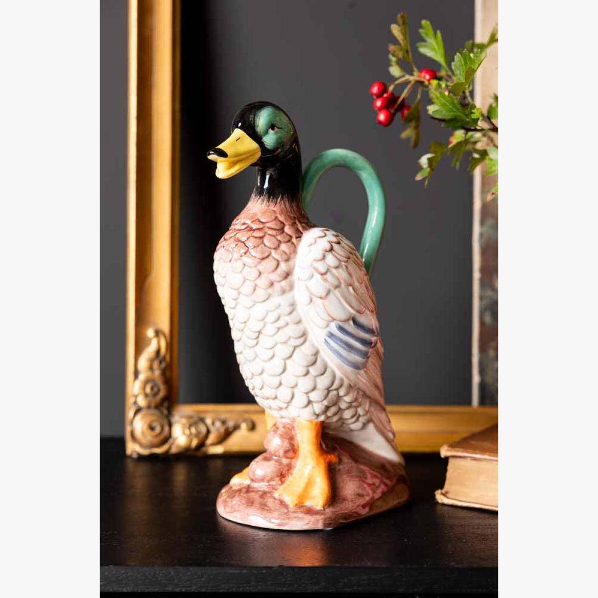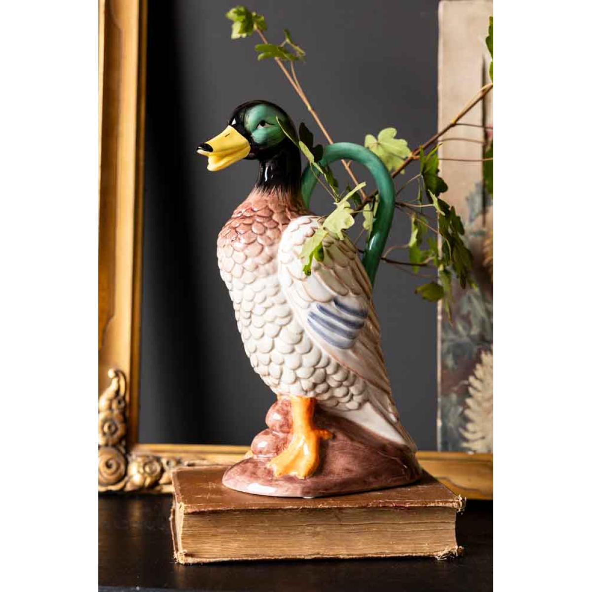 Meet the Quirky Duck Vase – the kitsch flower vase your home’s been waiting for. This isn’t just a vase. Oh no. This is a full-on, gloriously realistic male duck bud vase strutting his stuff with those unapologetically bright orange feet, a gleaming green head that catches the light just right, and a body that doubles up as the most unexpected floral display stand. Pop in a few tulips, daisies, or even just let him hang around your unusual home accessories. He’s bold. He’s charming. He’s a little bit ridiculous, all in the best way possible. Perfect for lovers of quirky home décor, lovers of nostalgia, collectors of all things kitsch, or anyone who believes life is too short for boring vases. - Quirky Duck Vase - Measures: W15.5cm x H28.6cm x L12.5cm - Materials: Dolomite