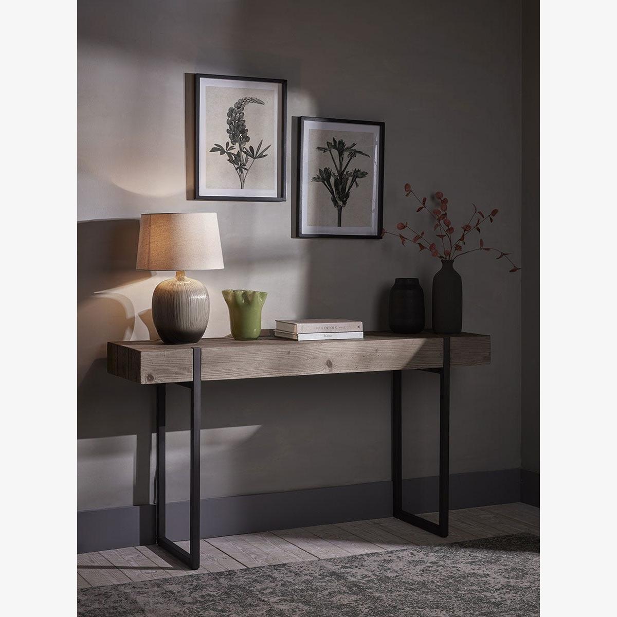 I love this little console table for its minimalist yet sturdy design, making it a versatile piece that fits well into a range of interiors. Its simple, natural finish allows it to complement both modern and rustic settings, whether as a hallway focal point or behind a sofa. When styling, consider balancing its clean lines with textured accessories like ceramic vases, books, or artwork. It’s practical for displaying statement pieces, plants, or day-to-day essentials, while its slim profile keeps the space feeling open. For a cohesive look, place it near neutral walls or colour accents that pick up on the decorative objects, creating a calm, curated feel.