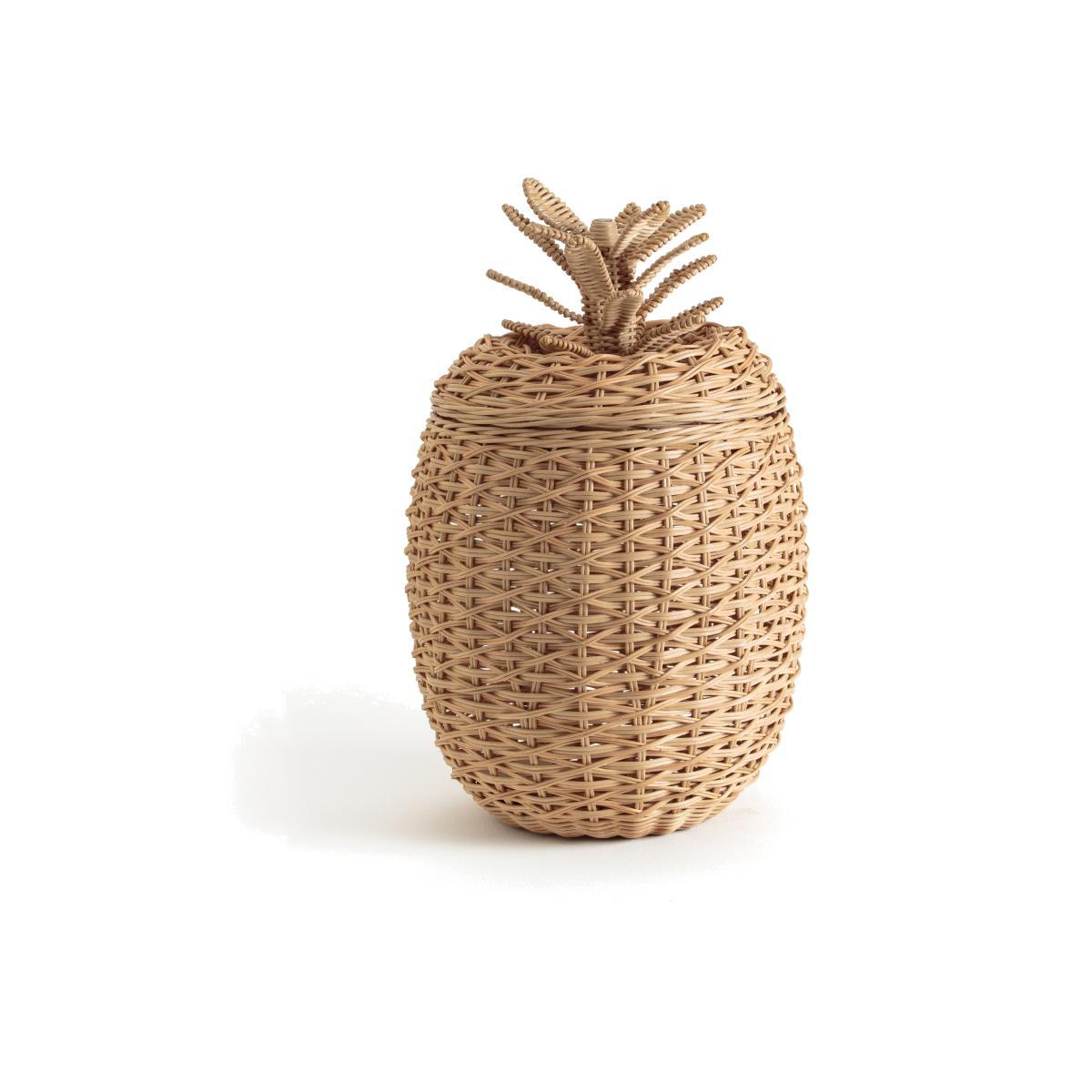 The Quito basket. The playful pineapple shape of this woven basket makes it a charming addition to a playroom or bedroom for storing toys or laundry.. In woven rattan. Dimensions: Diameter 42 x H50 cm (H66 cm including lid).Dimensions and weight of parcel: - L43 x H53 x D44 cm, 2.5 kg