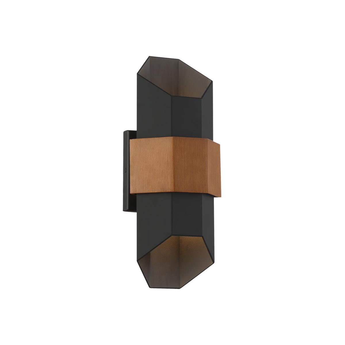 Highlight your home with the modern design of the Chasm collection. The eye-catching geometric silhouette is finished in Matte Black and complemented with a painted wood effect band for an extra pop of style. This up and down light has integrated LED and is IP44 rated for outdoors.