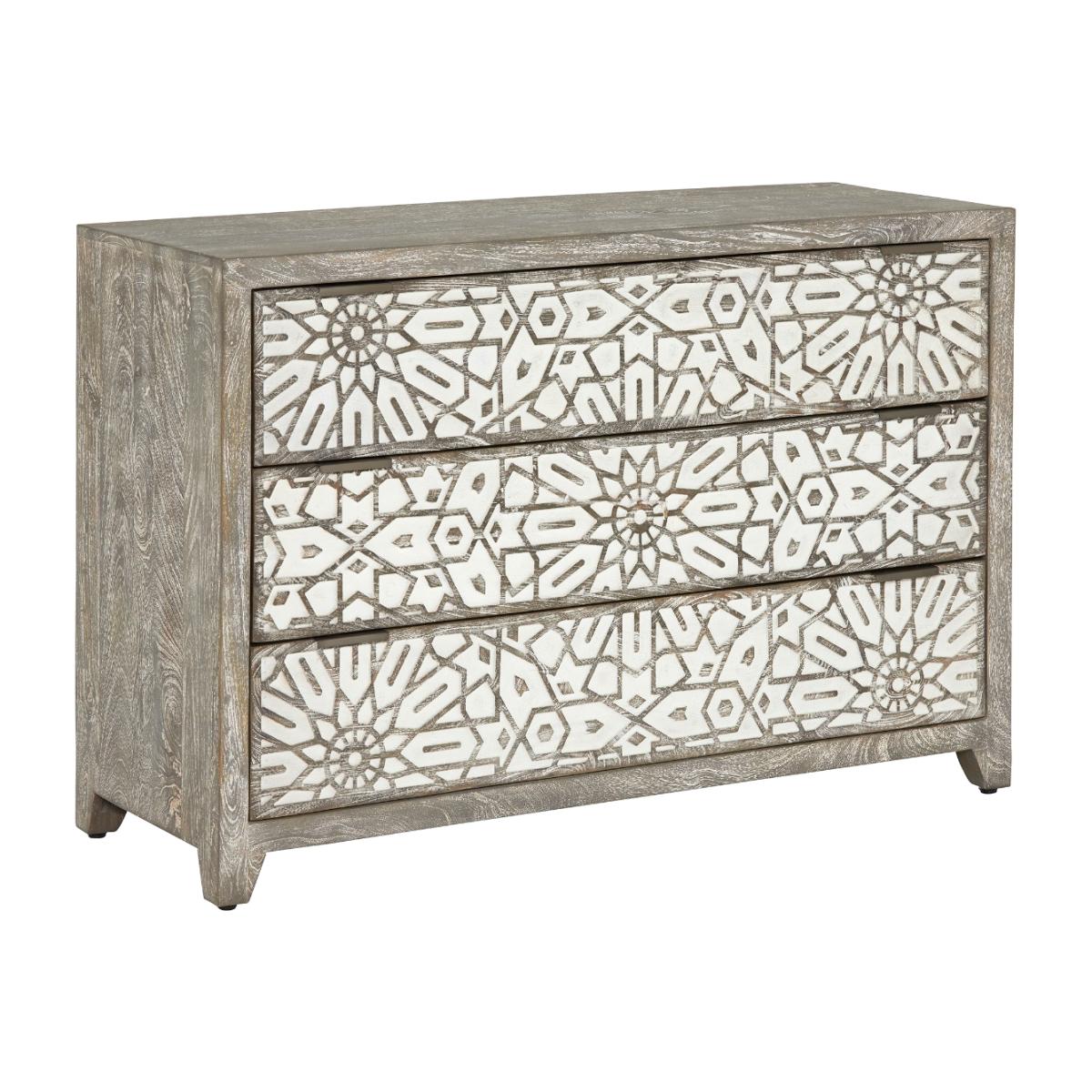 I love this piece for its versatile charm and practical appeal. The Rabat 3 Drawer Wide Chest works particularly well in coastal or bohemian interiors, where its neutral tones and geometric patterns add subtle texture and interest without overwhelming the space. It’s ideal for bedrooms, living rooms, or even hallways, offering ample storage while acting as a statement piece. For styling, consider grouping it with wicker baskets or linen storage bins on top to keep clutter concealed, or dress it with minimal decorative accents such as plants or candles for a relaxed, functional look. Its neutral palette ensures it complements a range of colour schemes, making it a smart investment for a timeless touch of pattern and practicality.