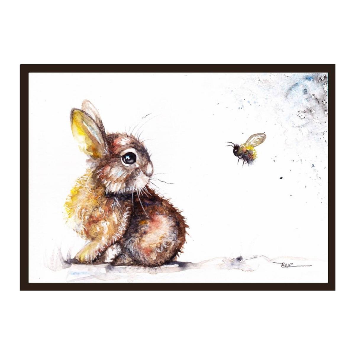 Indulge in the whimsy of nature with Be Coventry's Rabbit and Bee Watercolour Print. Originally hand-painted with meticulous detail in professional watercolours, this enchanting scene is now available as a captivating print. Each stroke brings the beauty of the outdoors into your living space. Framed in a timeless black frame, it's a statement piece that effortlessly elevates any room. Immerse yourself in the tranquility and charm of this unique creation, adding a touch of natural allure to your home.