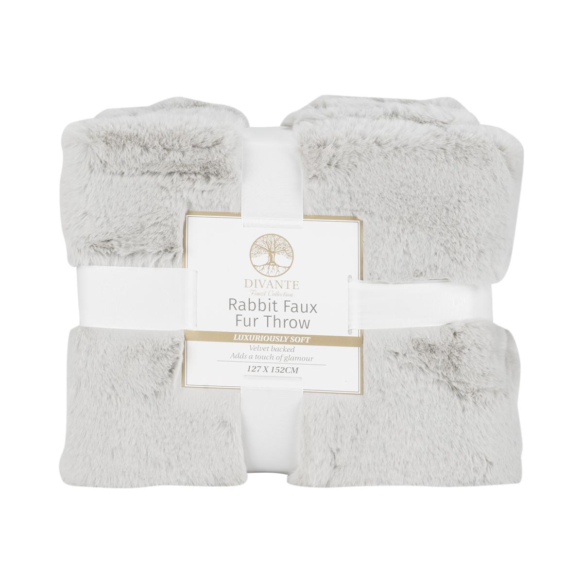 Rabbit Faux Fur Throw - Silver / Large