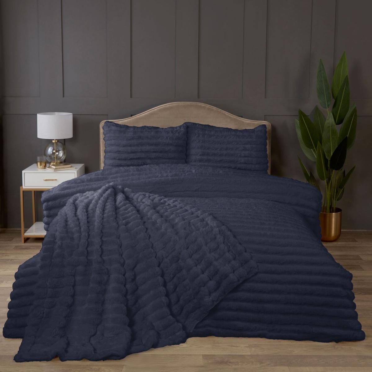Rabbit Fur Polyester Soft Plush And Cozy Duvet Set With Pillowcase - Midnight Blue / Single