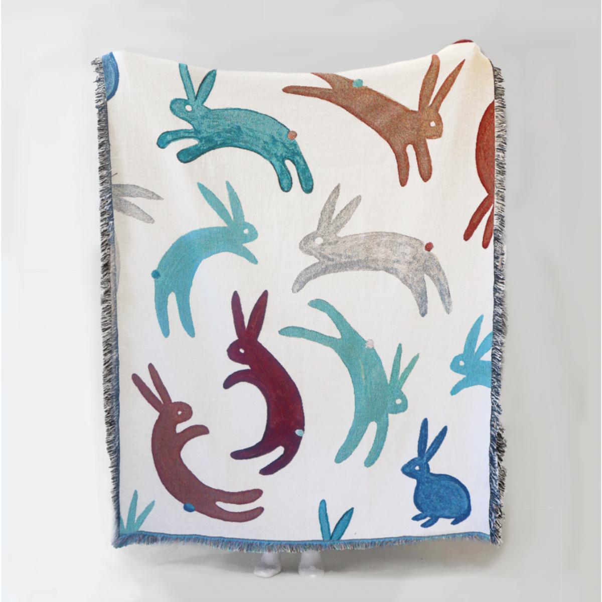 We are delighted to introduce the latest addition from the creative world of artist and designer, Rosanna Corfe – the vibrant and whimsical Rabbits jacquard throw. This charming piece is crafted from recycled cotton, embodying both sustainability and artistic ingenuity. With its intricate jacquard weaving technique, it's not just a throw; but a precious piece that will add a burst of colour and character to your living space.