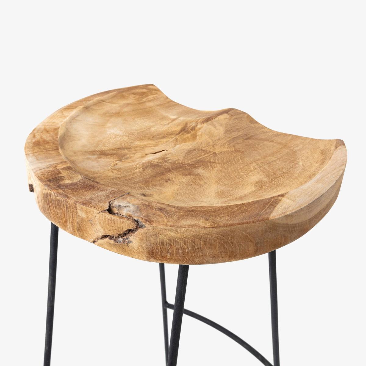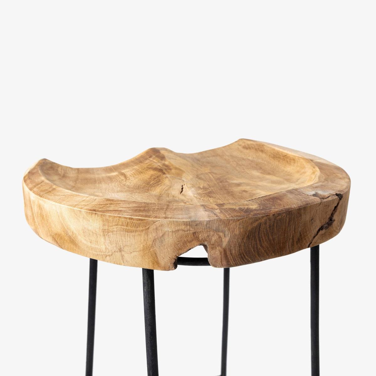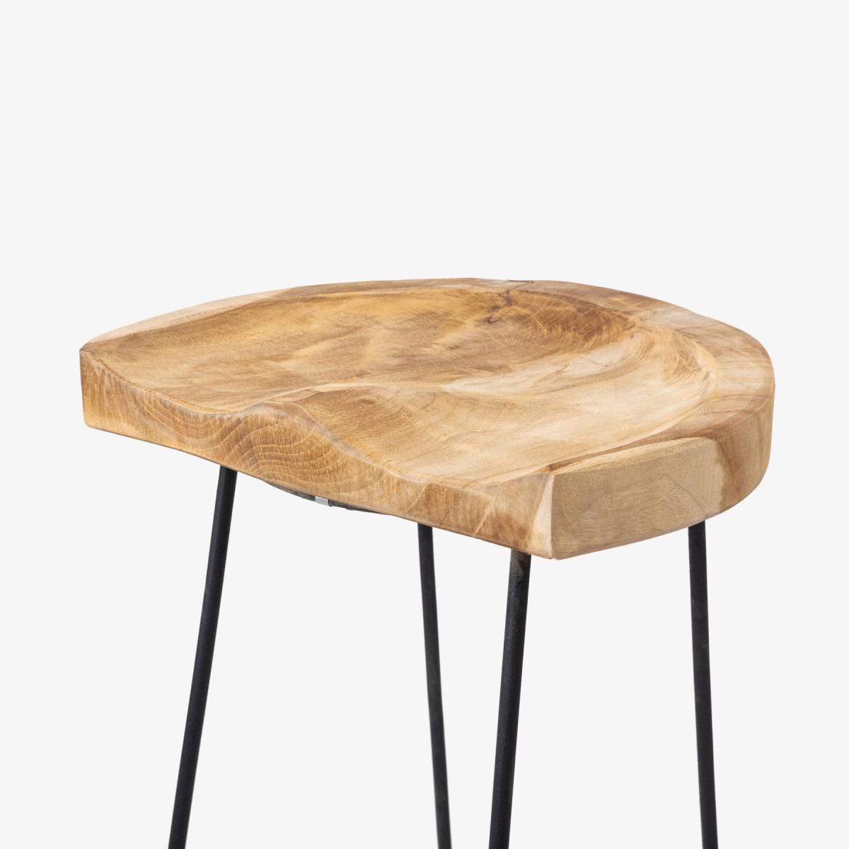 I love this stool for its minimalist appeal and natural materials, making it incredibly versatile for a range of interiors. The wooden seat adds warmth and texture, perfect for both rustic and modern schemes, while the sleek black metal frame offers a contemporary edge. It works particularly well in breakfast bars, kitchen islands, or creative workspaces. For styling, consider pairing it with other natural or neutral finishes to highlight its organic charm, or group multiple units for a casual, laid-back vibe. Practical tips include using it in informal areas or for occasional seating, as the simple design works best in settings where style takes precedence over heavy-duty use.