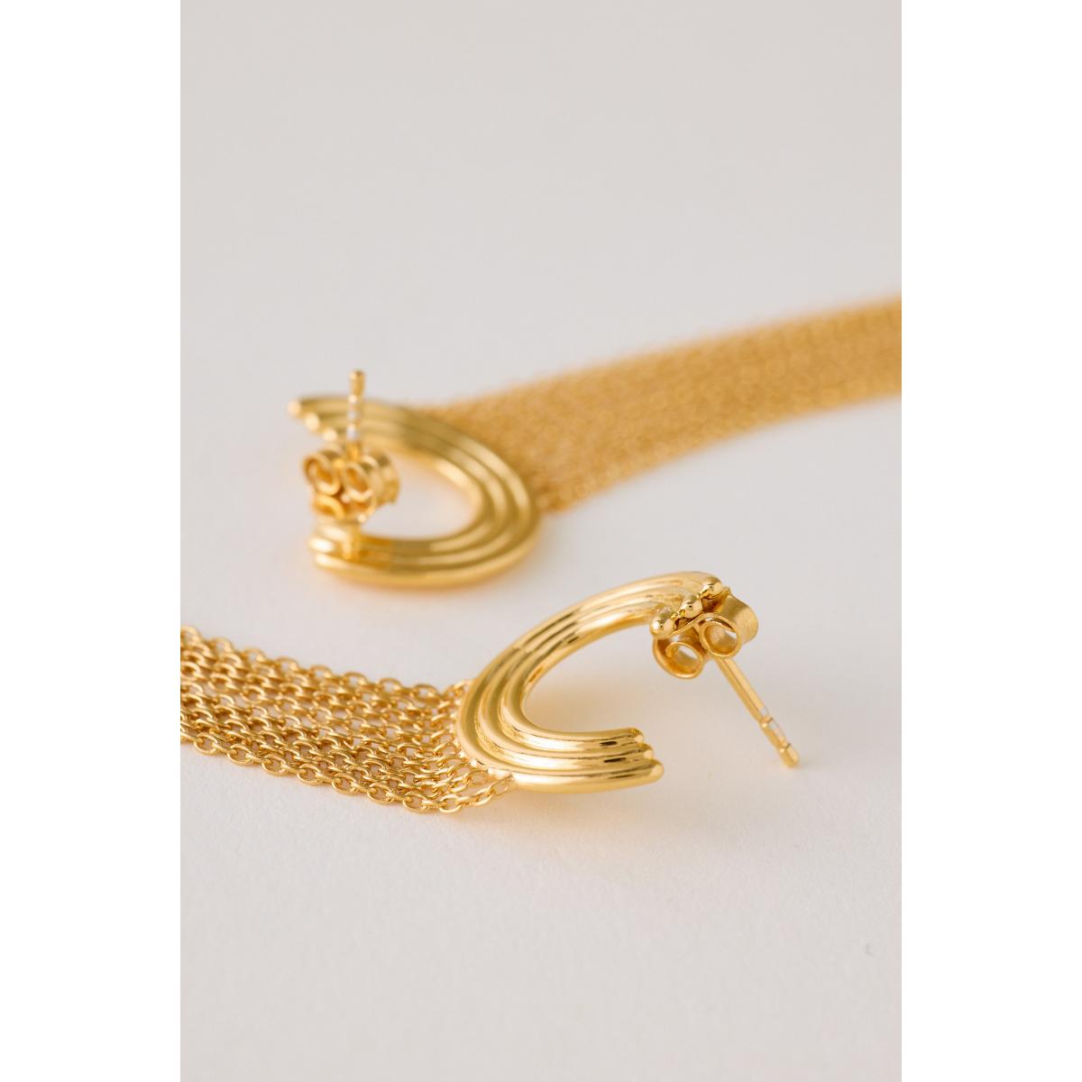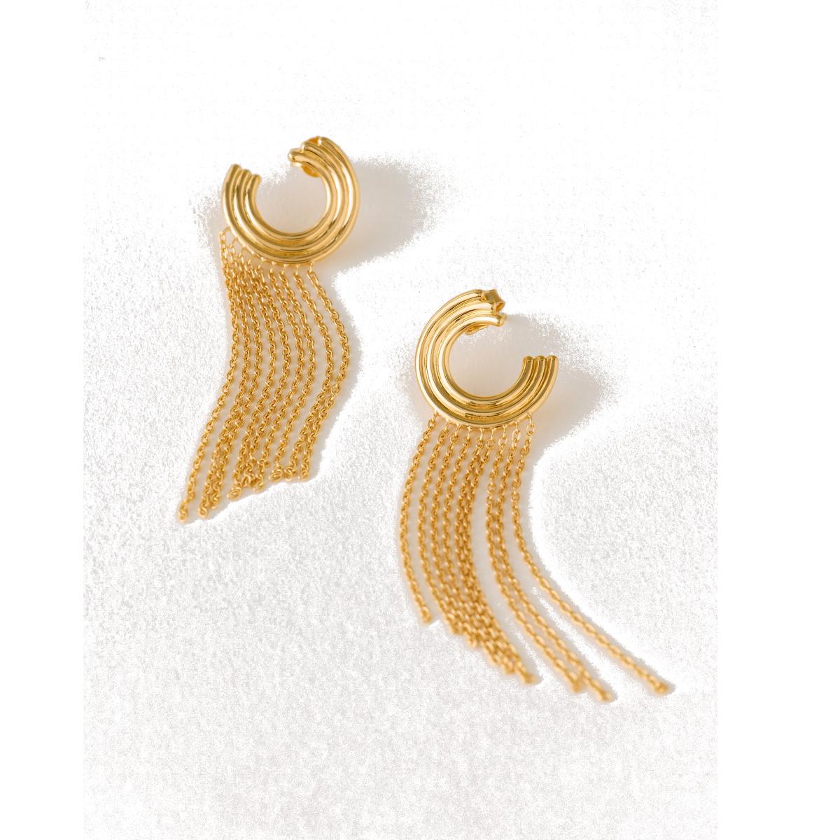 These striking statement earrings feature Art Deco-inspired swirls and swishy chain tassels for a unique addition to your accessories. * By Rachel Jackson * 18k Gold-Plated Sterling Silver * Post styling * Imported