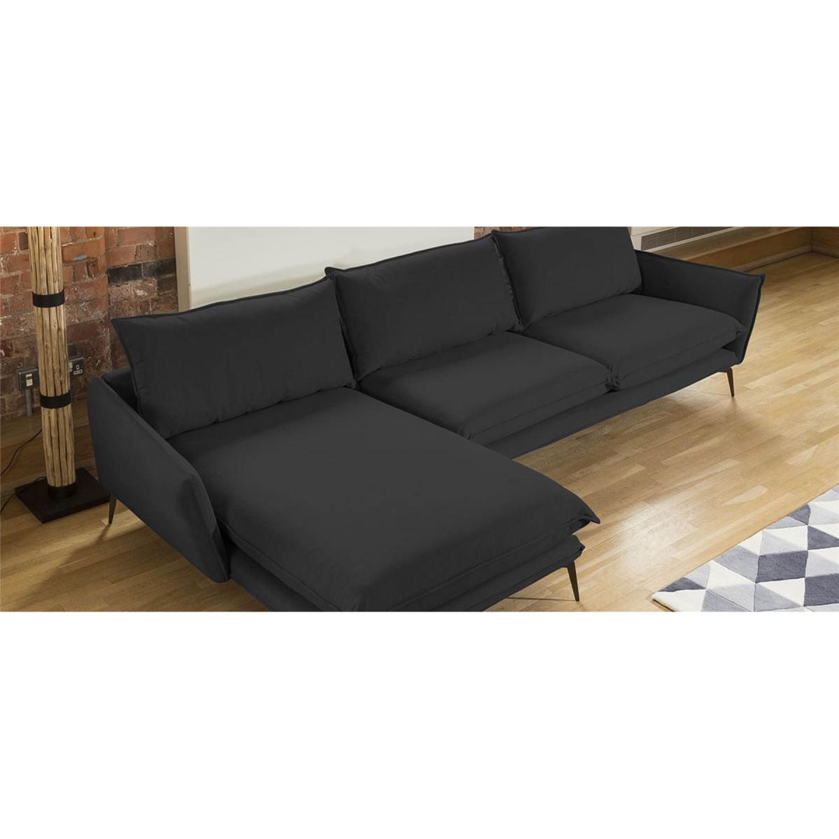 I love this corner sofa for its versatile shape and contemporary appeal, making it a great focal point in both modern and industrial-style interiors like the one pictured. Its generous size ensures ample seating, perfect for social spaces, while the many fabric options allow you to tailor the look to your colour scheme-think muted tones for a minimalist vibe or bold hues for a statement piece. Practical styling tips include adding textured cushions and throws for comfort, and positioning it against a feature wall or beneath large windows to maximise natural light. The sleek, tapered legs give it a light, airy feel, making it suitable for various layouts from open-plan living rooms to cosy lounge nooks.