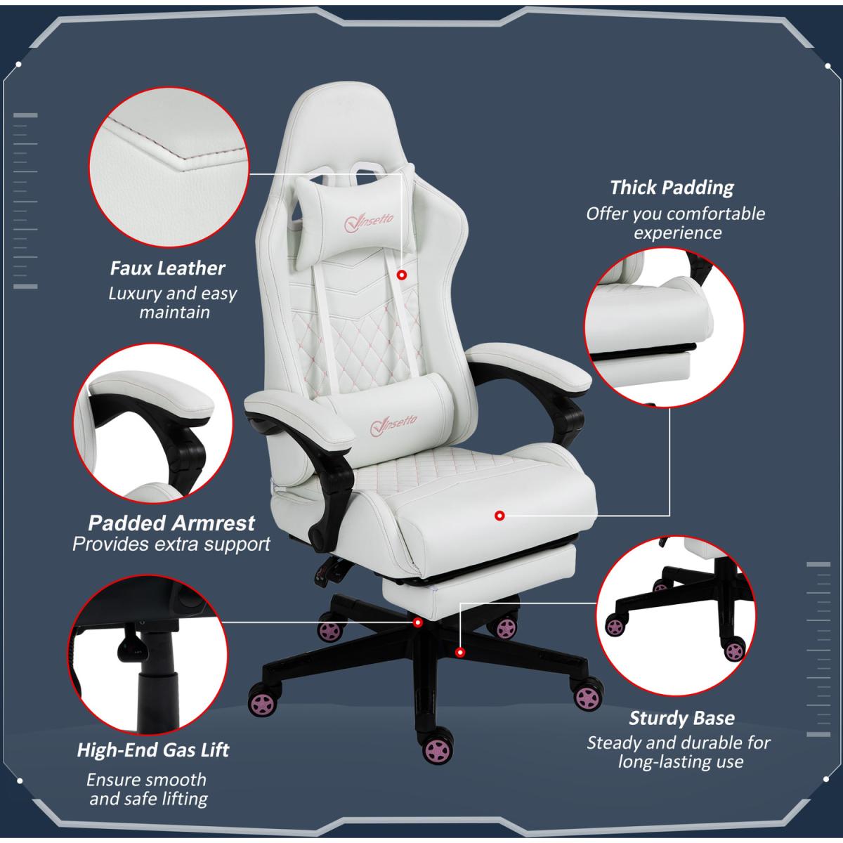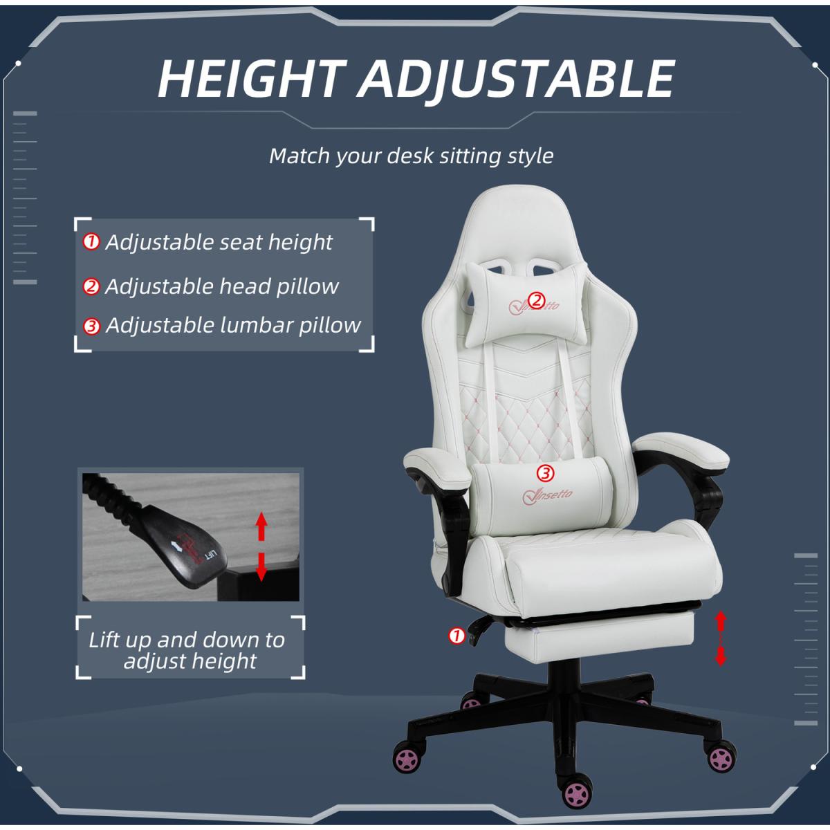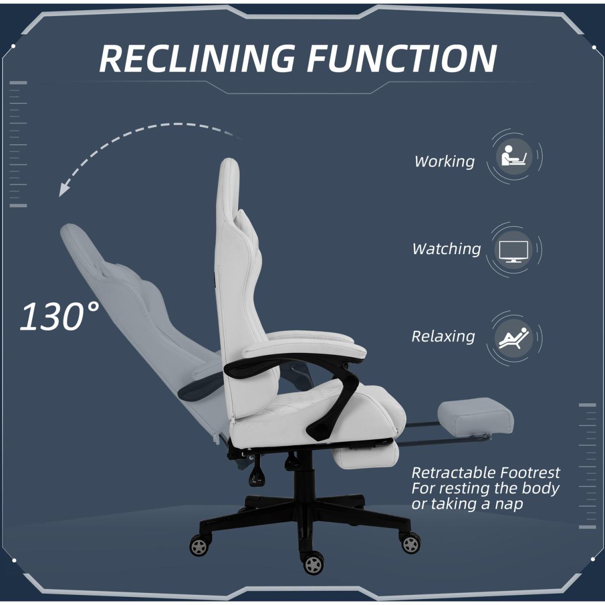 Racing Gaming Chair with Arm, PU Leather Gamer Recliner - White