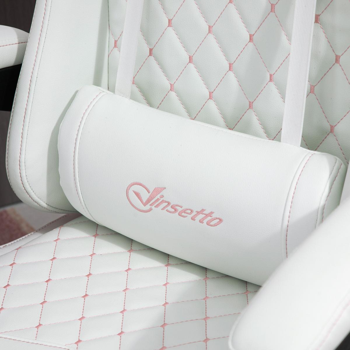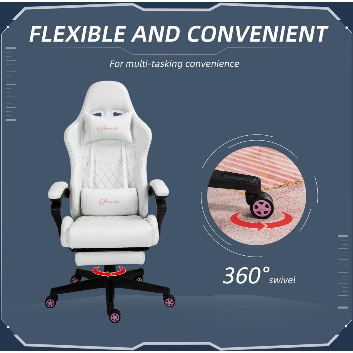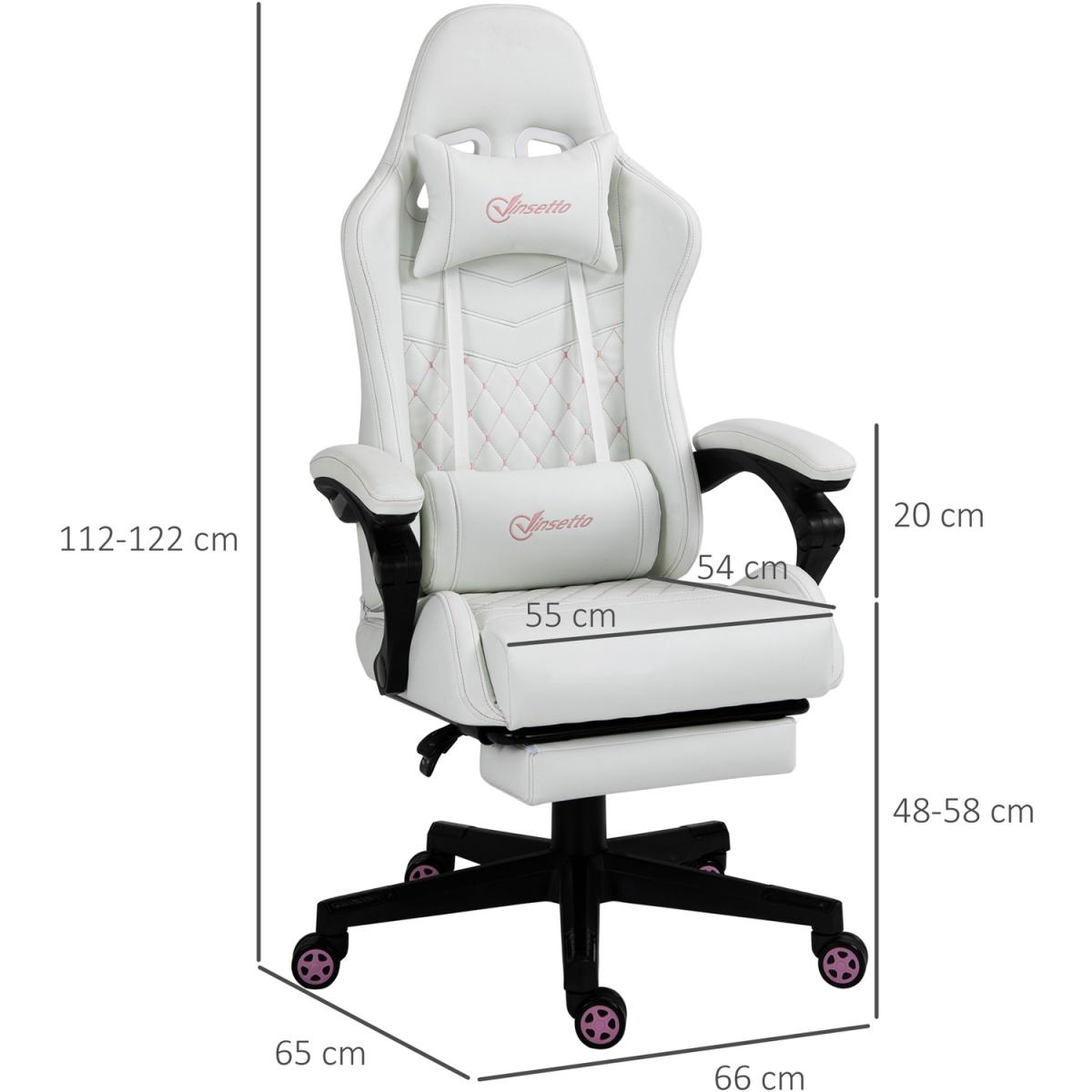 Racing Gaming Chair with Arm, PU Leather Gamer Recliner - White