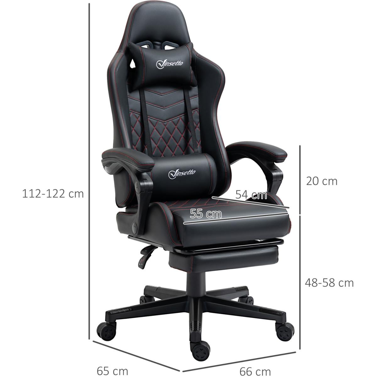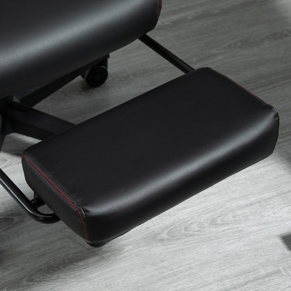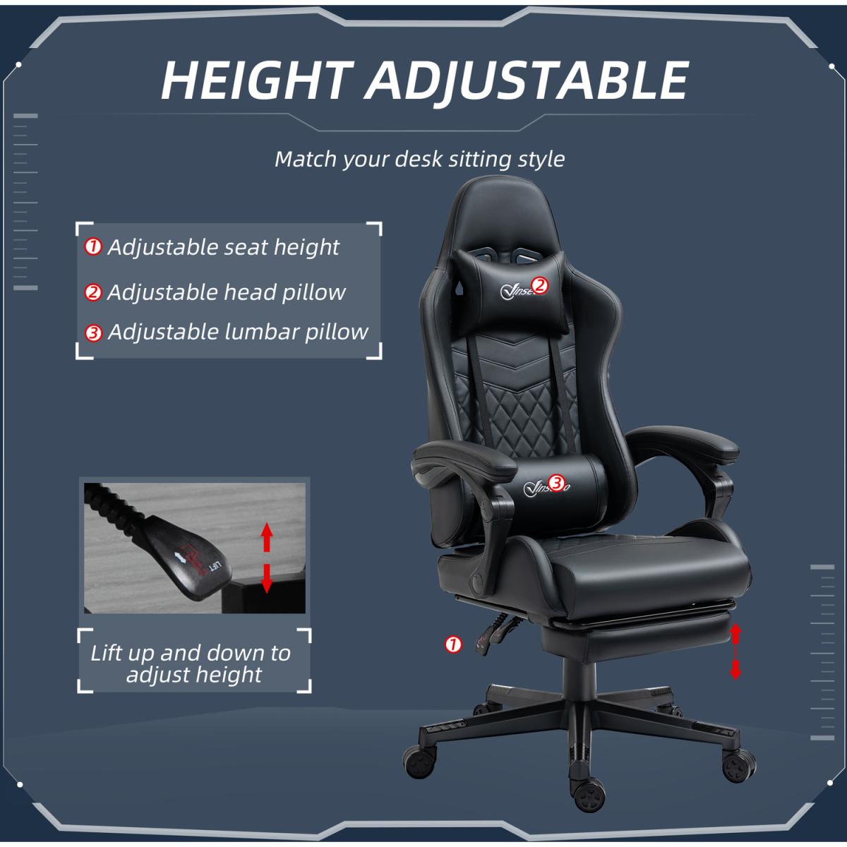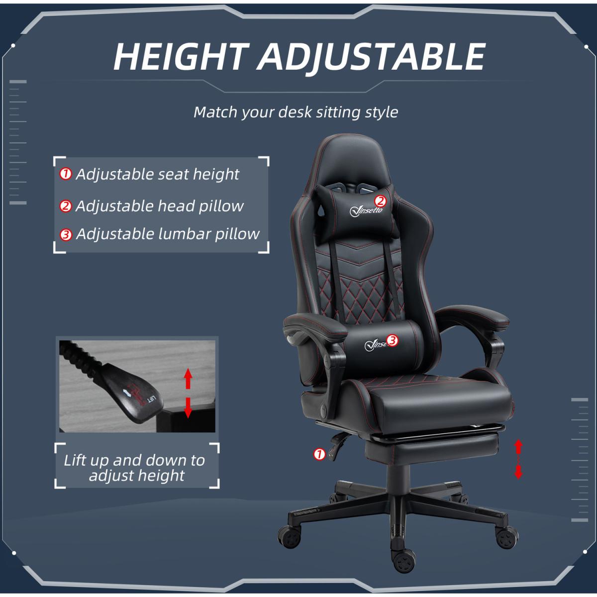 Bold and impressive, this gaming computer chair, from Vinsetto, will create a striking look in your special room. Sleek black PU leather is stylish, with contrast-colour stitching for that extra impact. This gaming chair for adults and teenagers is perfect for not only your specialised e-sports room, but also the office, study - even bedroom. Height is adjustable between 112cm and 122cm, finished with five wheels on the base to move easily.
