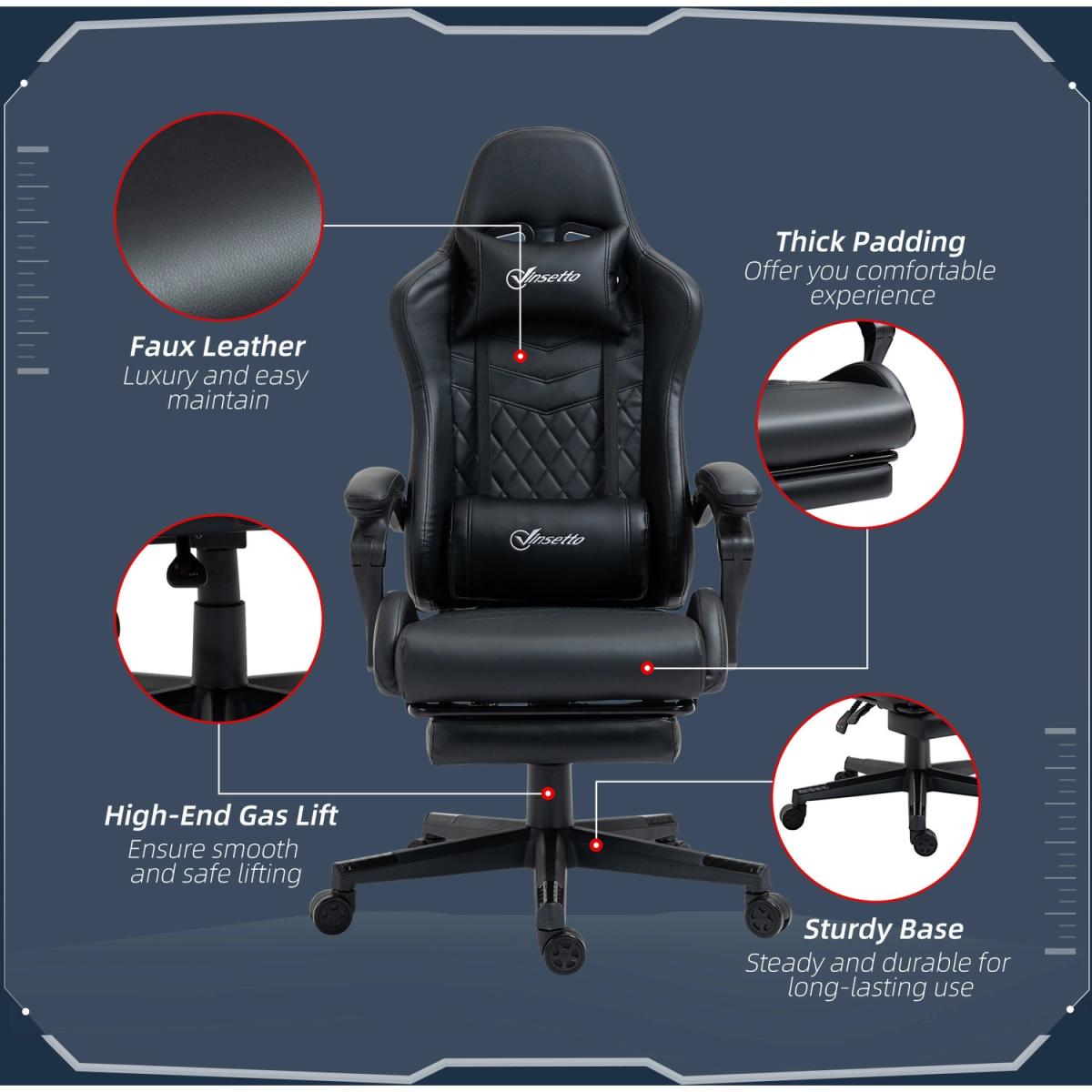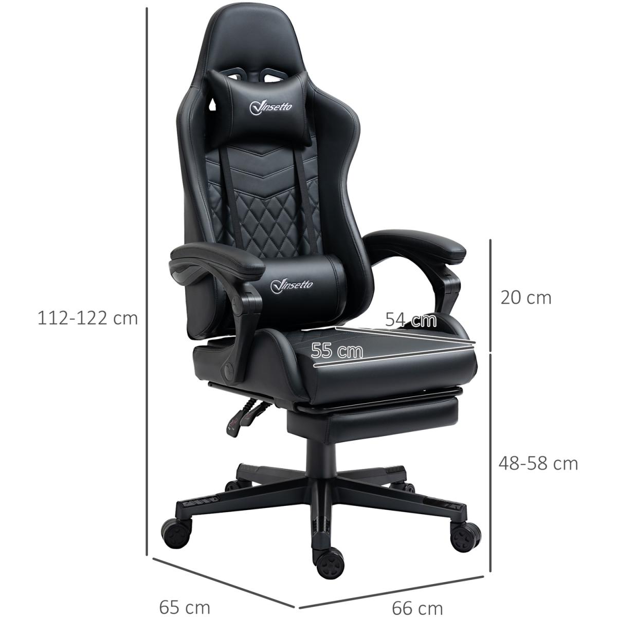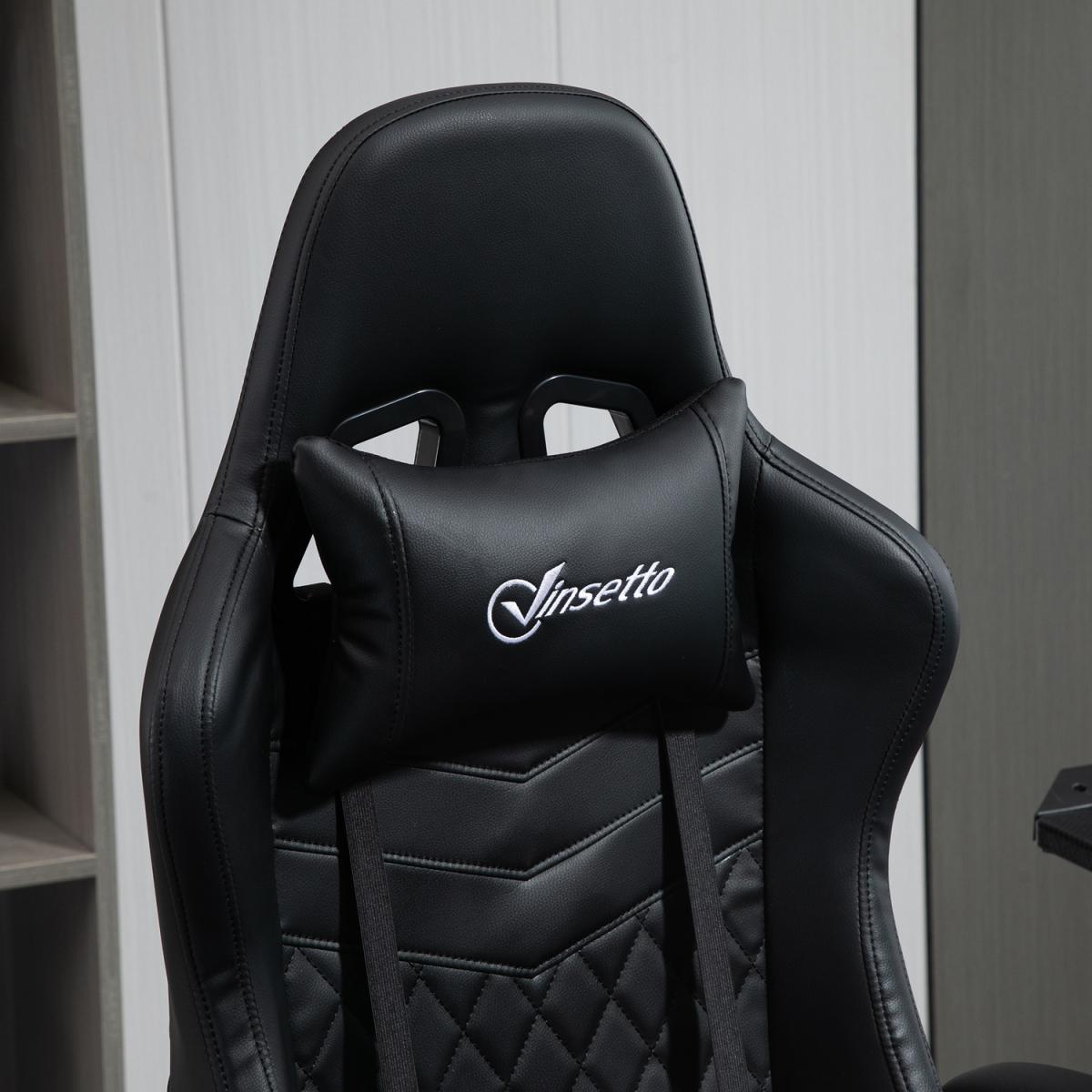 Bold and impressive, this gaming computer chair, from Vinsetto, will create a striking look in your special room. Sleek black PU leather is stylish, with contrast-colour stitching for that extra impact. This gaming chair for adults and teenagers is perfect for not only your specialised e-sports room, but also the office, study - even bedroom. Height is adjustable between 112cm and 122cm, finished with five wheels on the base to move easily.