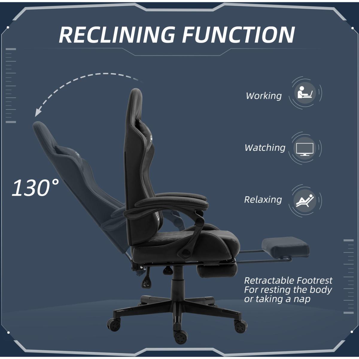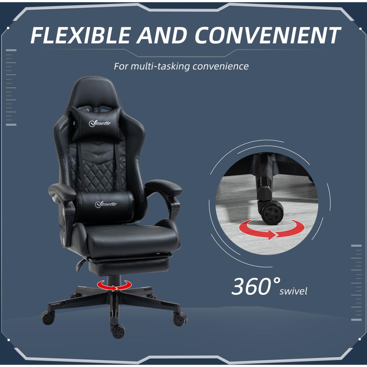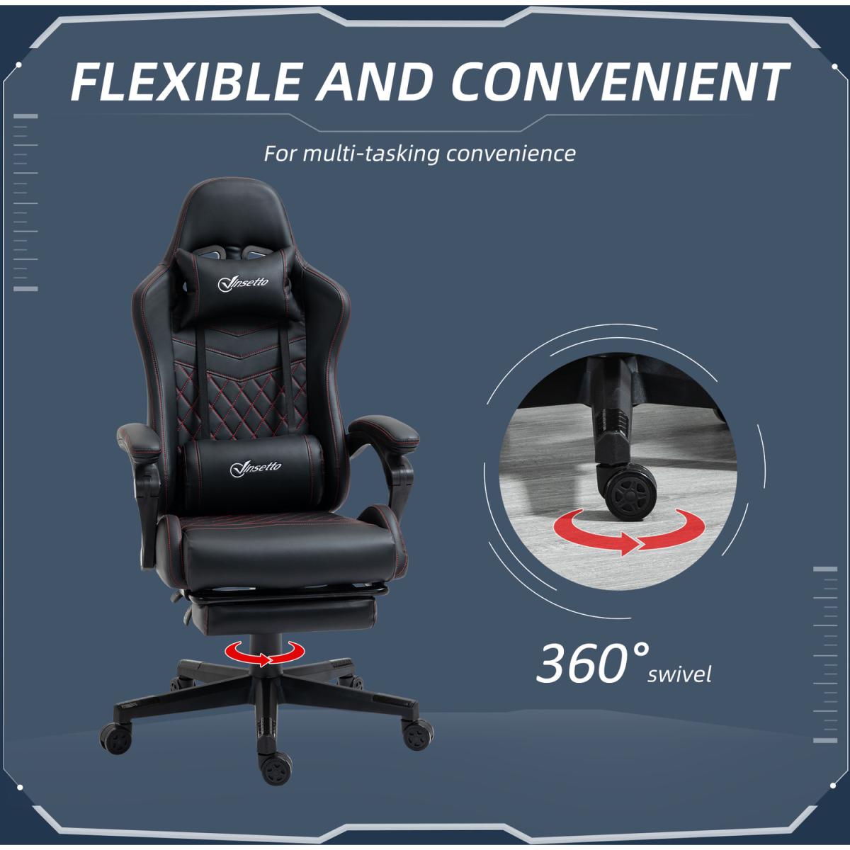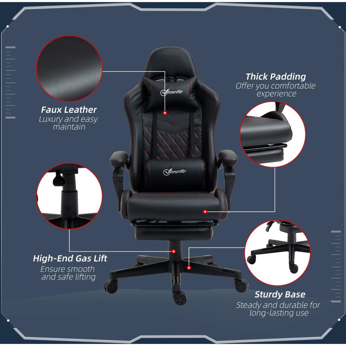 Bold and impressive, this gaming computer chair, from Vinsetto, will create a striking look in your special room. Sleek black PU leather is stylish, with contrast-colour stitching for that extra impact. This gaming chair for adults and teenagers is perfect for not only your specialised e-sports room, but also the office, study - even bedroom. Height is adjustable between 112cm and 122cm, finished with five wheels on the base to move easily.
