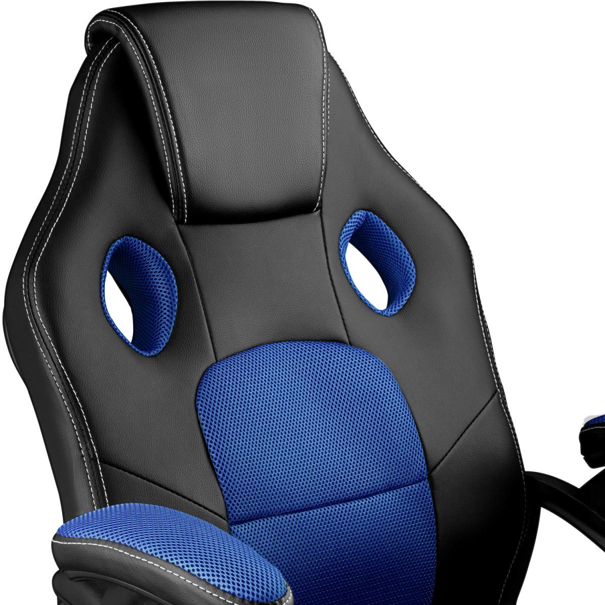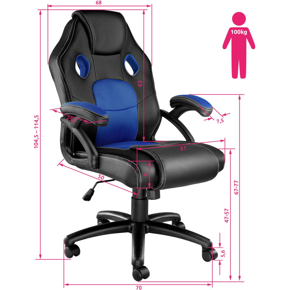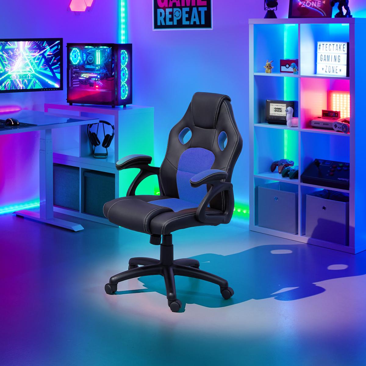In this ergonomically shaped racing computer chair from tectake, with its flowing lines, back support and comfortable padding, youll be sure to finish in first place. Breathable mesh inserts wick moisture away whenever working or gaming brings you out in a sweat. The robust base on this swivel chair guarantees exceptional stability, while the abrasion-resistant double castors glide easily over the floor. The plastics used give the construction its impressive durability and make using this racing chair from tectake a unique experience. Perfect for the home and office environments.