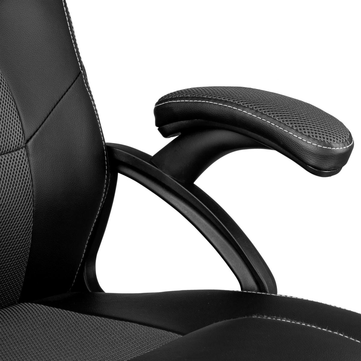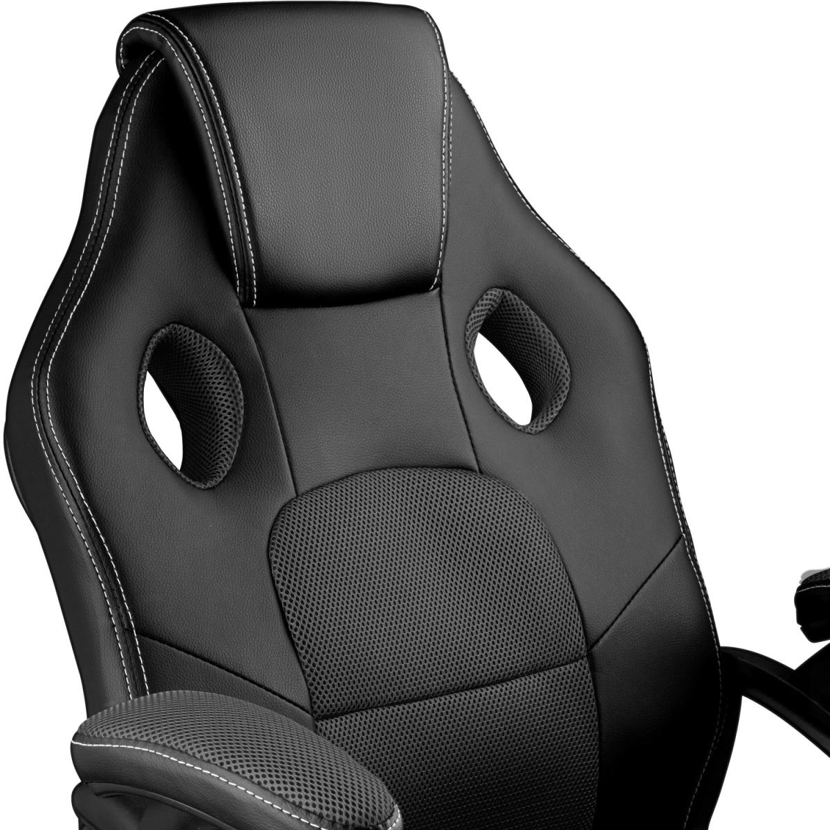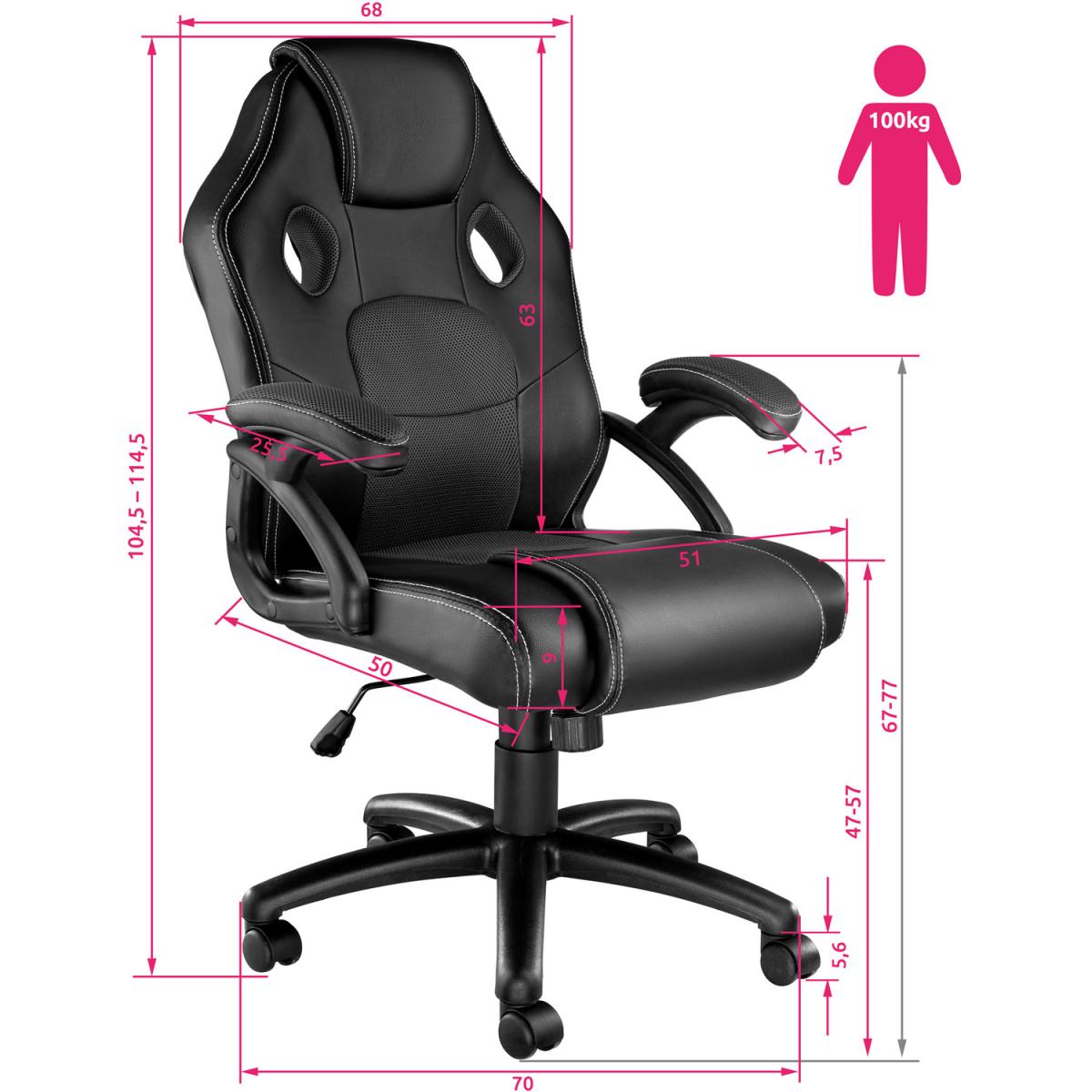 In this ergonomically shaped racing computer chair from tectake, with its flowing lines, back support and comfortable padding, youll be sure to finish in first place. Breathable mesh inserts wick moisture away whenever working or gaming brings you out in a sweat. The robust base on this swivel chair guarantees exceptional stability, while the abrasion-resistant double castors glide easily over the floor. The plastics used give the construction its impressive durability and make using this racing chair from tectake a unique experience. Perfect for the home and office environments.