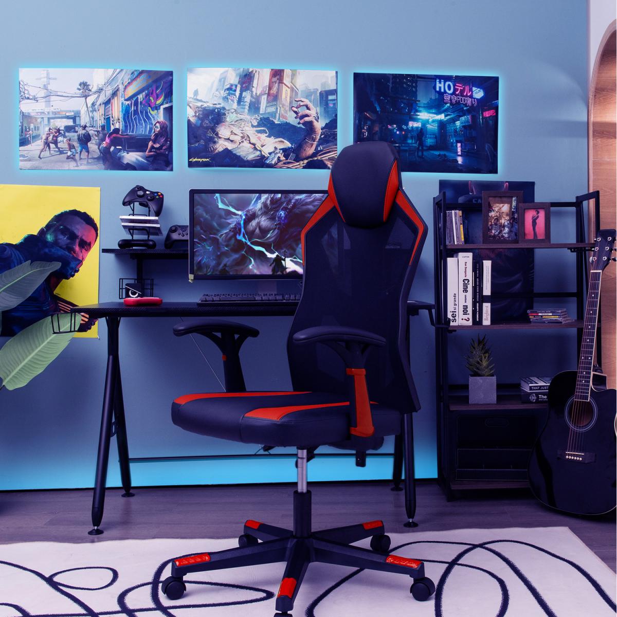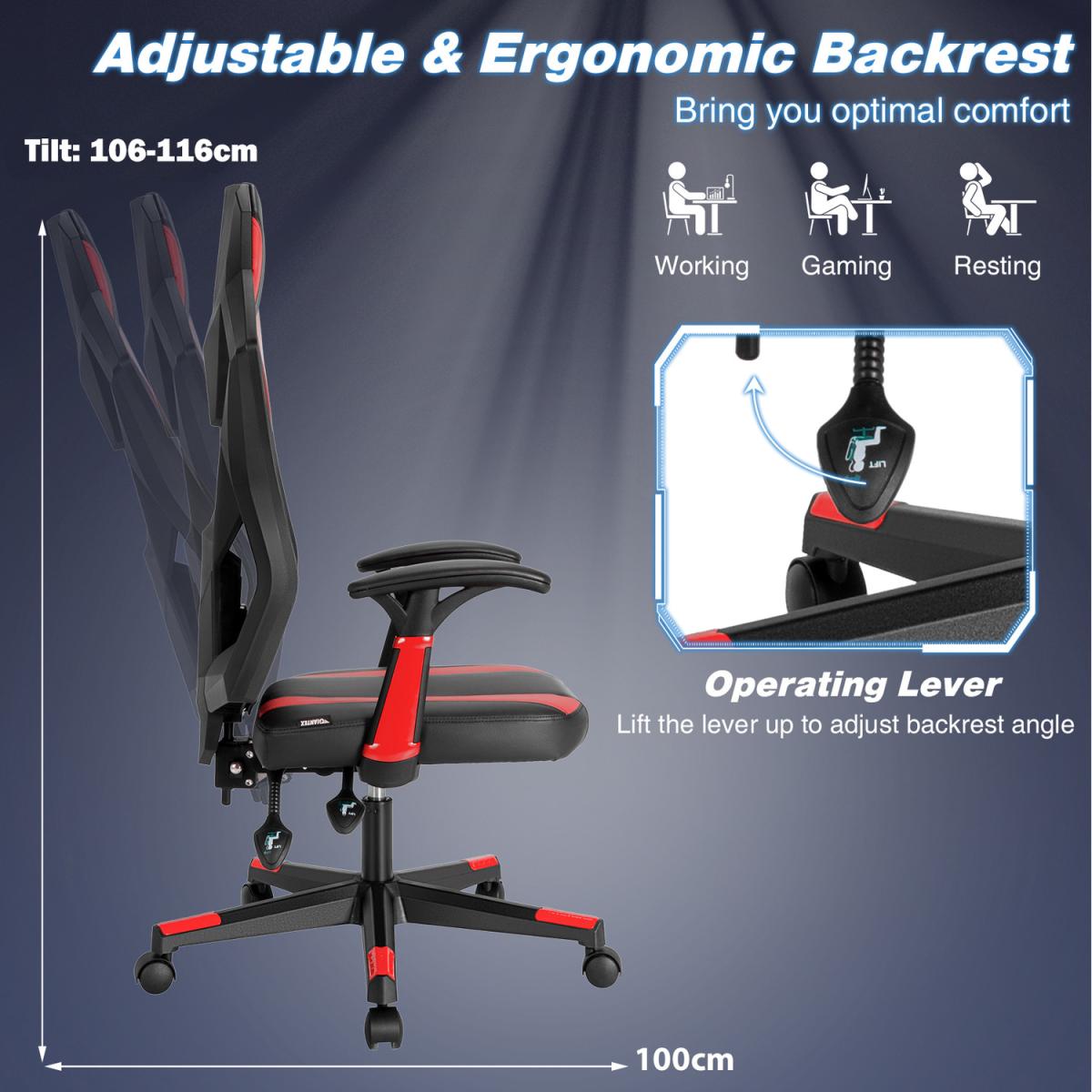 Still looking for a nice gaming chair or office chair? Our ergonomic swivel chair is the perfect choice for you! This racing chair can not only improve your gaming experiences, but also serve as a comfortable computer chair for your daily work or study. The ergonomic high backrest perfectly conforms to the curve of body to achieve optimal comfort. And it is covered with breathable mesh fabric for added comfort. Supported by a heavy duty 5-claw base and ultra sturdy gas rod, this gaming chair ensures excellent stability and bearing capacity. 5 flexible wheels offer fluent and quick motion. What's more, this racing style chair features easy seat and back height adjustment, backrest tilt control, soft padded armrests and thick sponge cushion, which can bring you a better using experience.