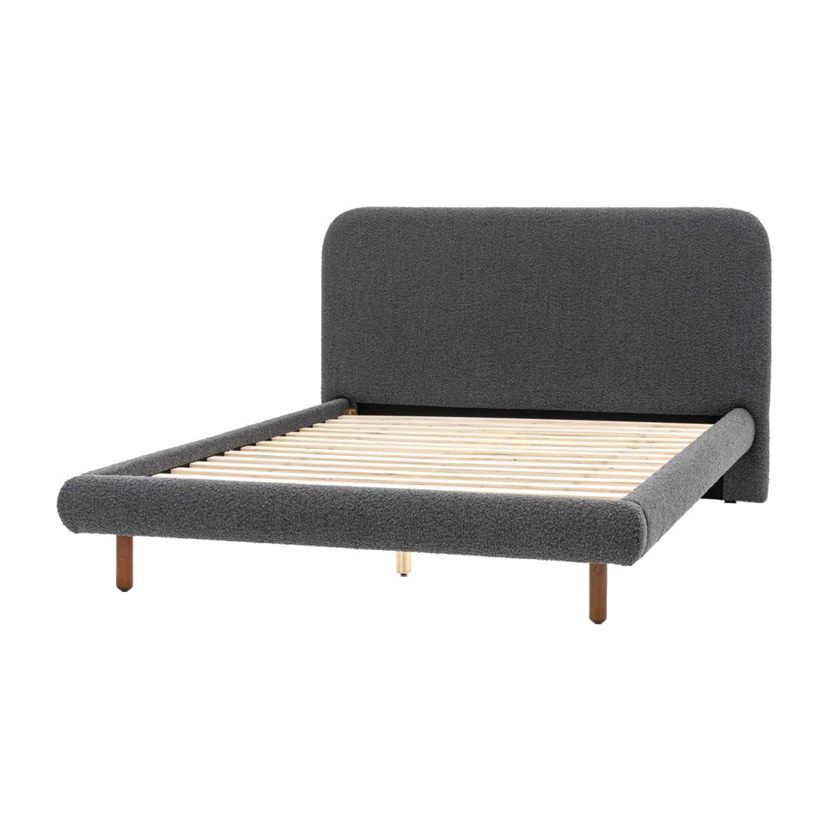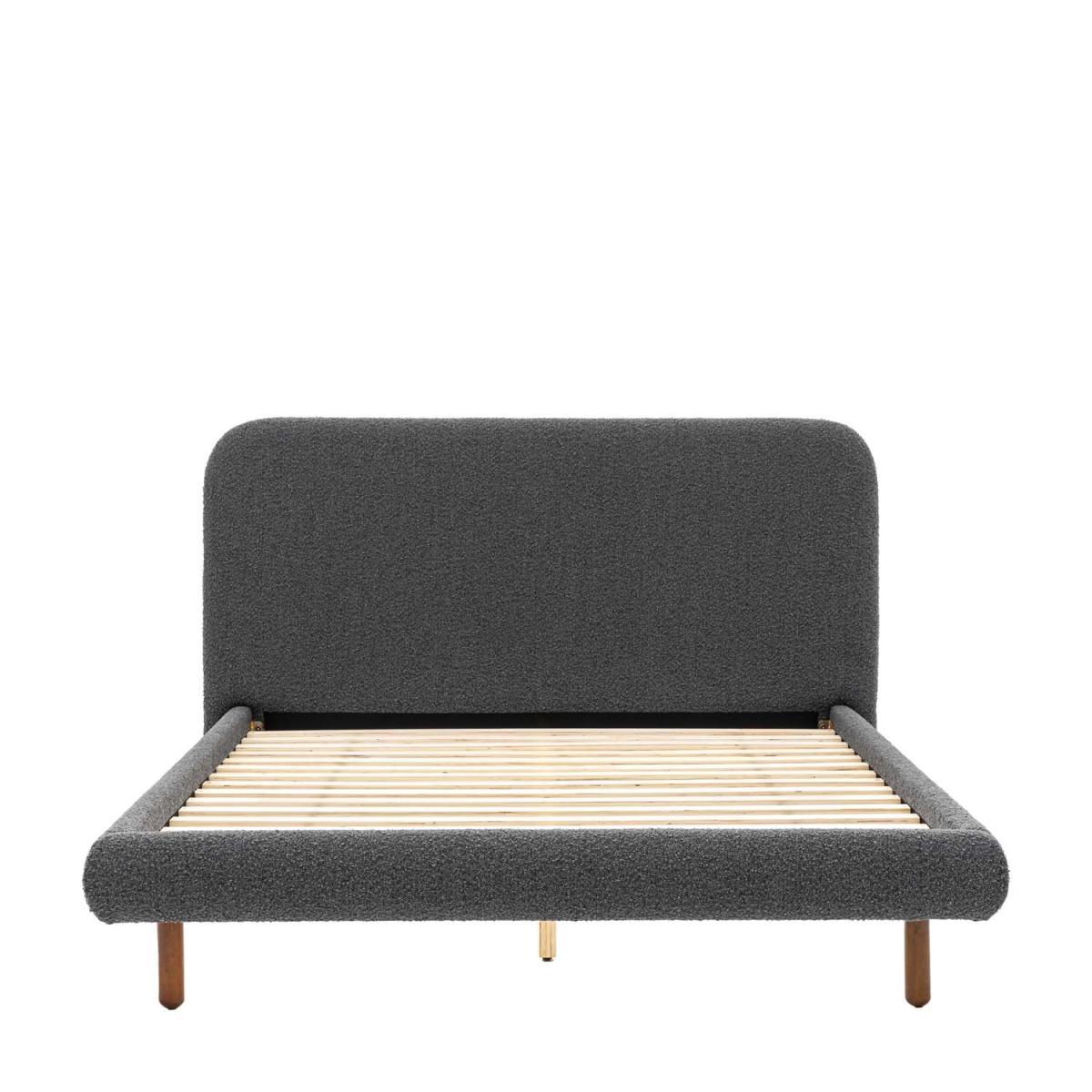 The Radford bed is a stunning modern bedstead that will update any bedroom. Upholstered in charcoal grey boucle fabric with an intriguing bobble texture, the gently curved headboard paired with slim wooden legs add to the contemporary feel, making this bedstead the perfect addition to any modern home.