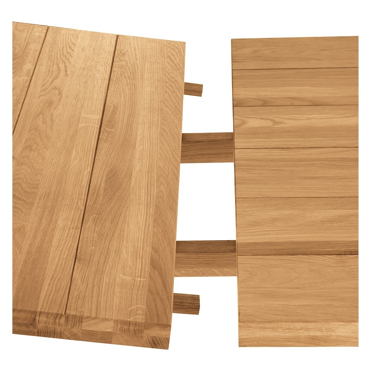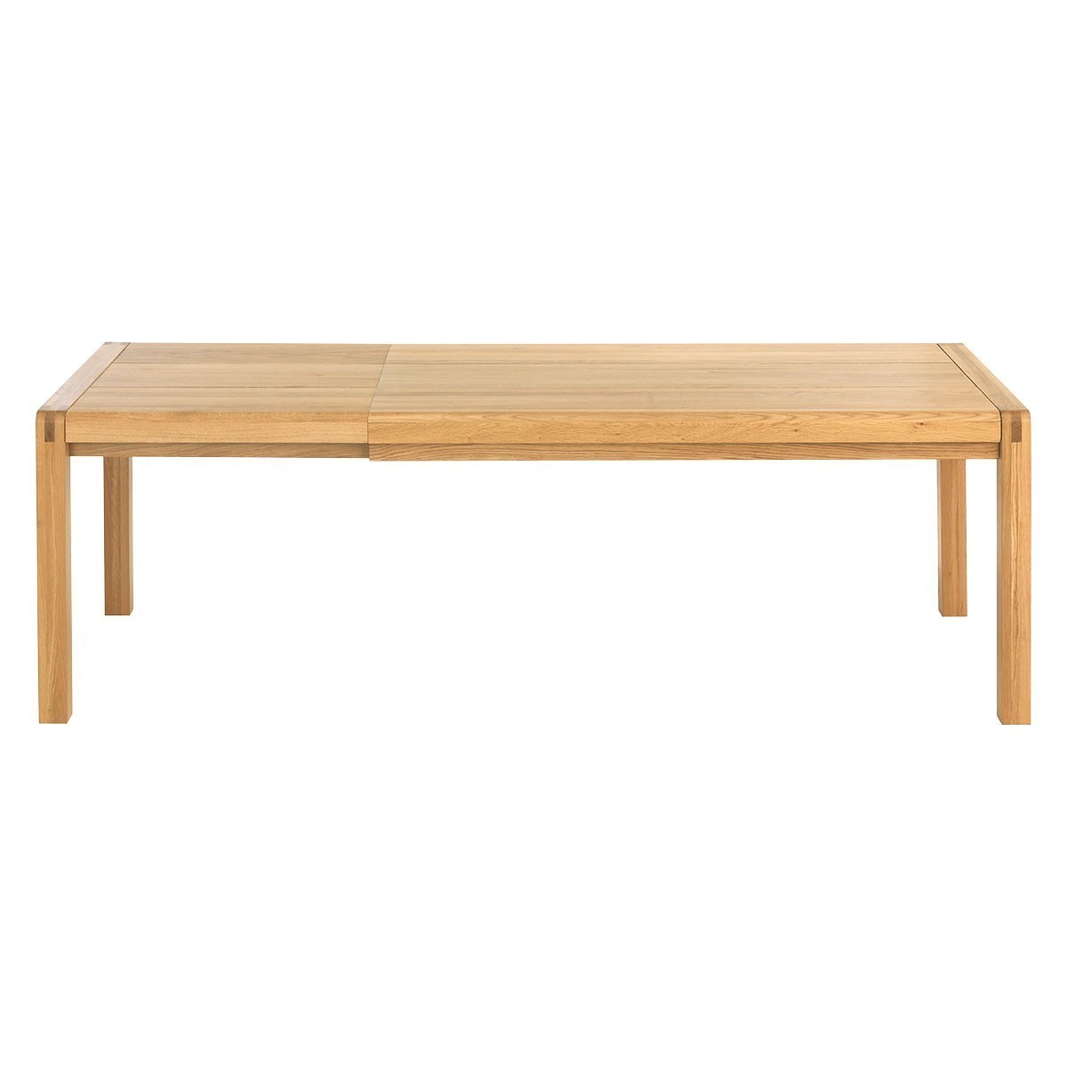 The Radius 6-10 seater oak extending dining table is an understated and timeless design that's perfect for family dining and entertaining.;Made from solid oak, the table extends quickly and easily, and its extension leaf is stored within the table when not in use.;The design's rounded corners are joined with traditional bridle joints, a carpenter's joint that allows for a corner connection that is strong in all directions and needs no additional bracing.;The dining table is part of the Radius furniture range, designed by Simon Pengelly exclusively for Habitat, which includes living, dining and bedroom furniture.