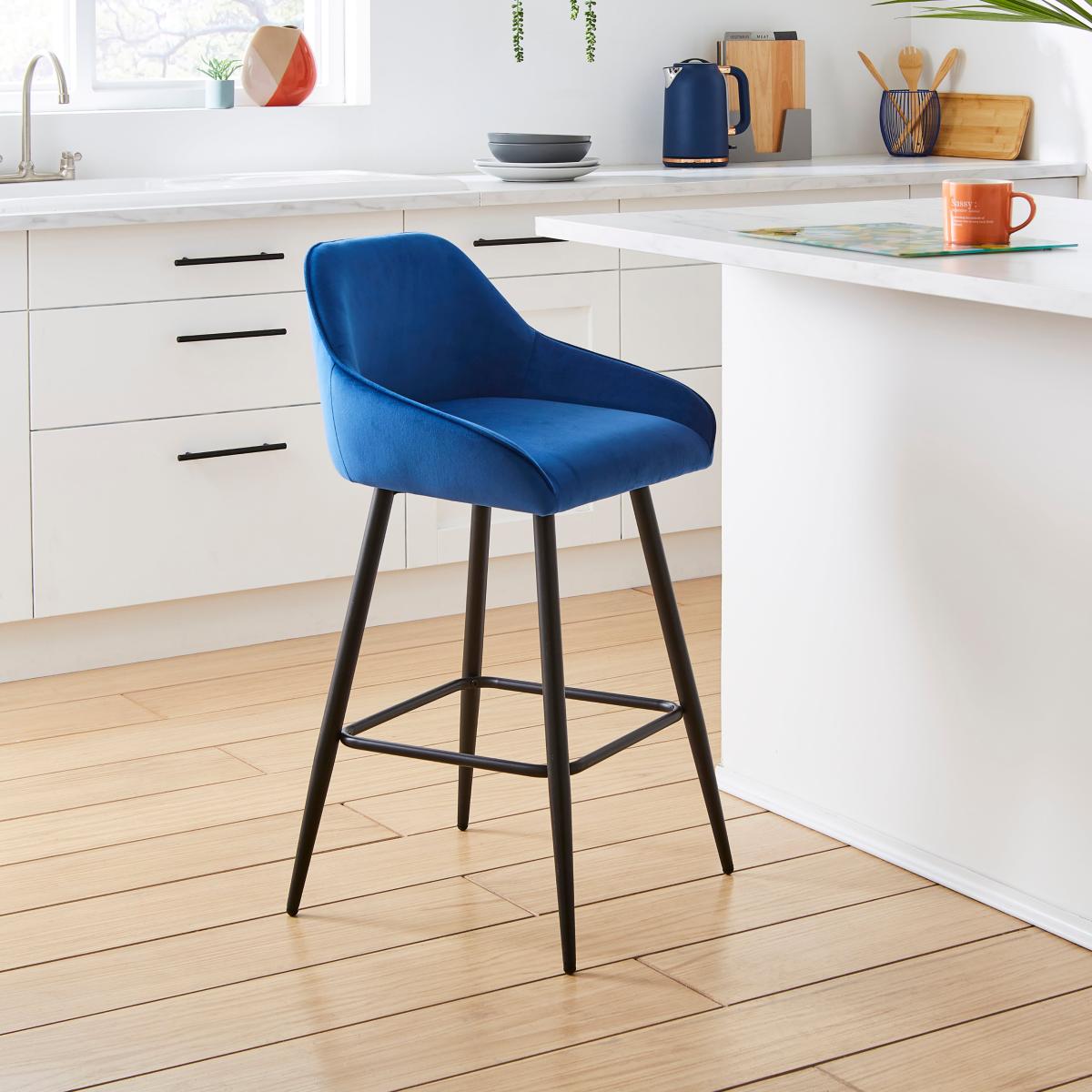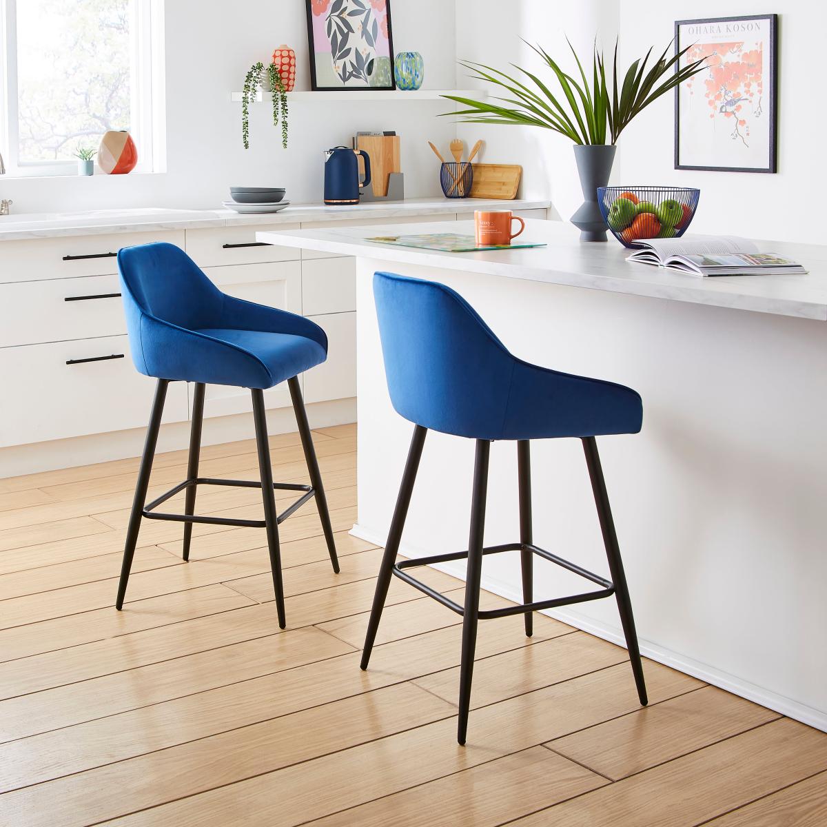 The Radleigh bar stool is an excellent choice for adding a touch of contemporary elegance to any kitchen or bar area. I love its rich velvet upholstery in classic blue, which brings colour and texture without overwhelming the space. It works particularly well in modern, minimal, or eclectic interiors, offering both comfort and style. Practical styling tips include pairing it with a marble or wooden counter for contrast, or mixing it with metallic accessories to enhance the glamour. Keep the surrounding decor simple to let the vibrant seat shine, or incorporate similar blue accents elsewhere for a cohesive look. Overall, it’s a versatile piece that combines functionality with a sleek, trend-led aesthetic.