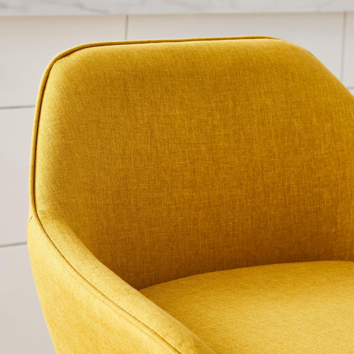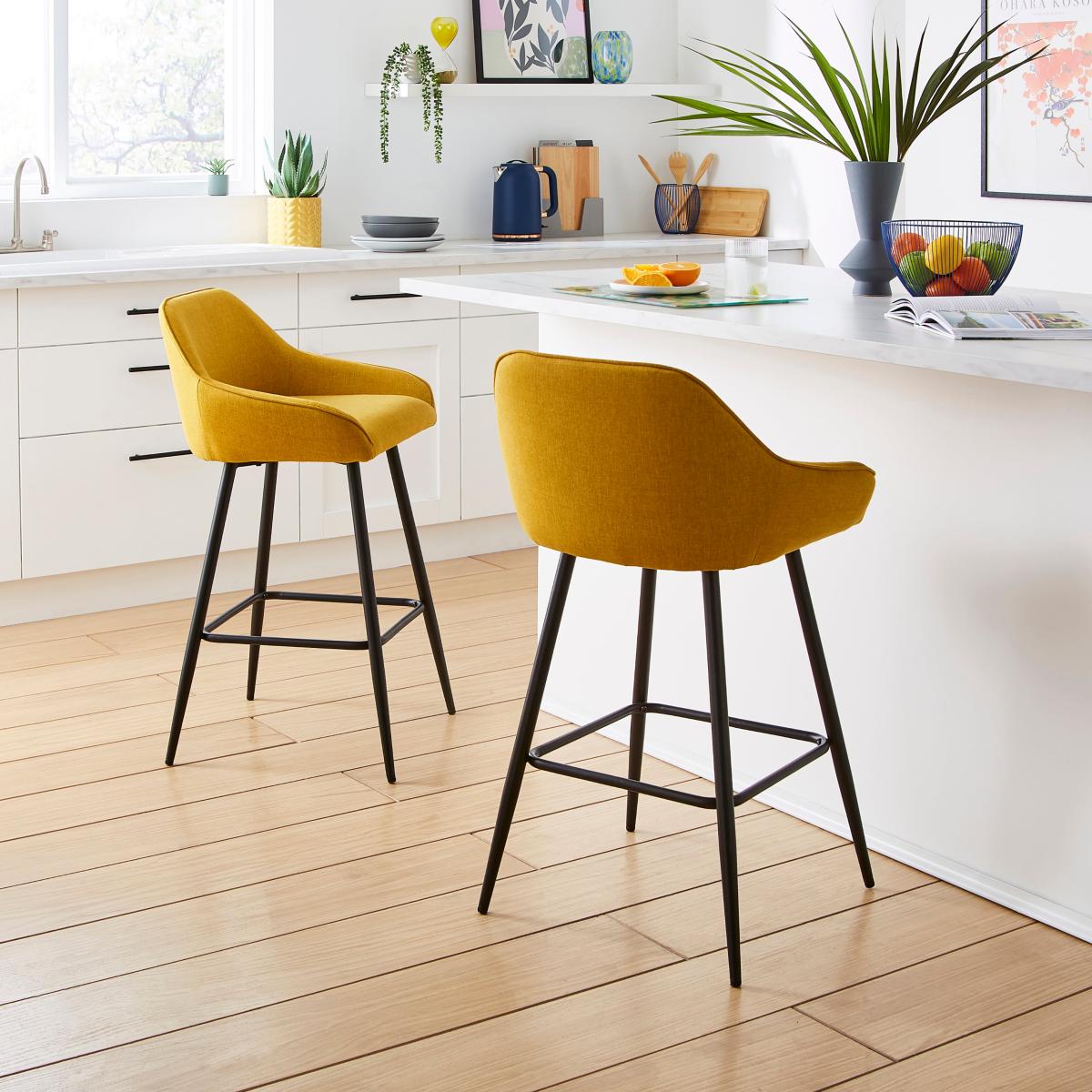 I really like this bar stool in the yellow ochre linen; it brings a warm, inviting pop of colour to any space. Its colour works particularly well in contemporary or Scandi-style interiors, adding a cheerful accent without overpowering the overall scheme. The linen fabric gives it a soft, textured look that pairs nicely with natural materials like wood and metal. Practical styling tip: use this stool to inject colour into neutral kitchens or breakfast bars, and complement it with matching accessories or cushions in similar tones for a cohesive look. Its sleek black legs make it versatile, so it can be paired effortlessly with various colour palettes and interior styles.