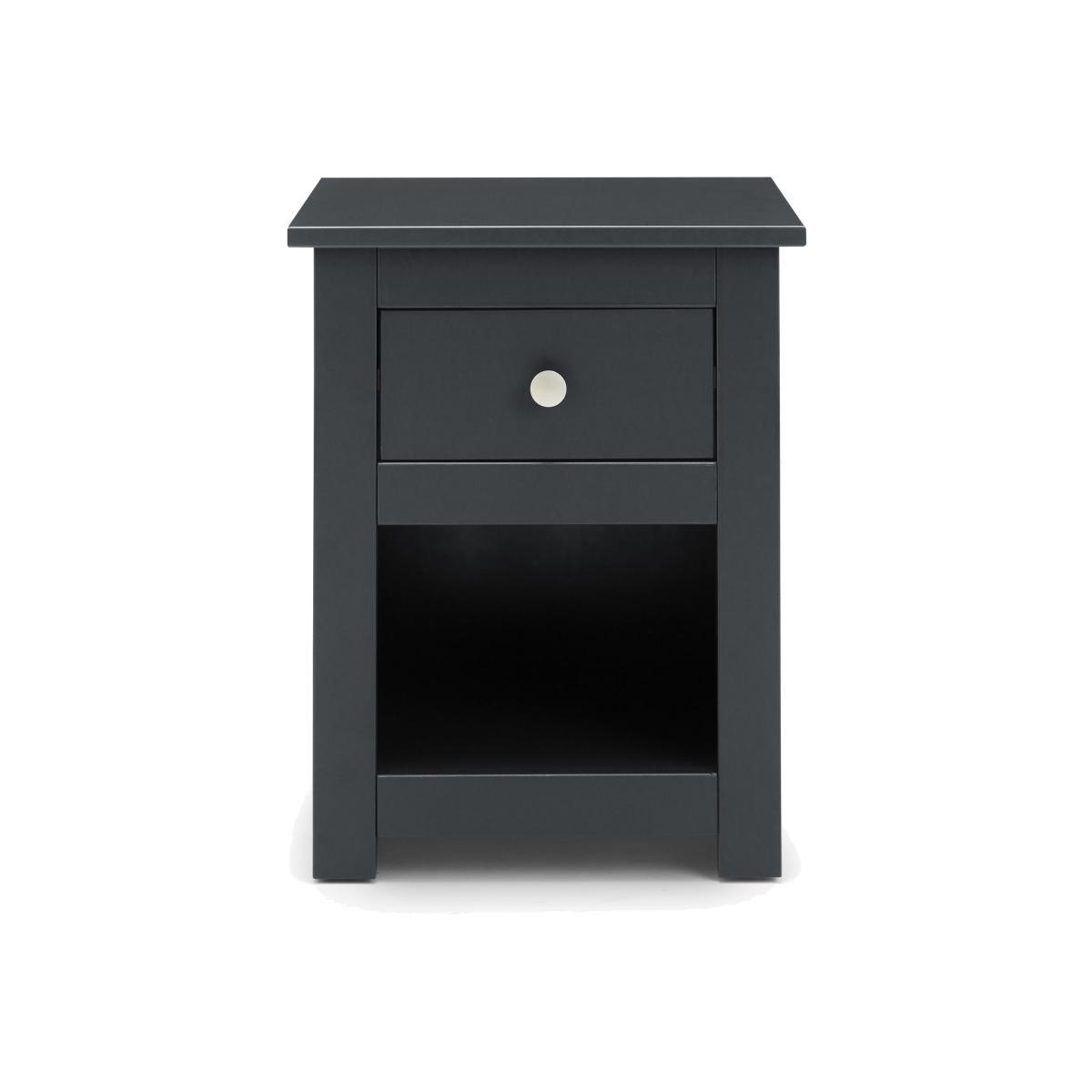 I love the Radley Bedside Table Dark Grey for its versatile and contemporary look. Its clean lines and muted tone make it a great addition to both modern and transitional interiors, adding a touch of sophistication without overpowering the space. This table works particularly well in schemes that favour muted or monochromatic palettes, but it can also serve as a grounding piece in more eclectic rooms. Practical styling tips include keeping the surface free of clutter, perhaps with a simple lamp and a couple of favourite books or a small plant for a lived-in feel. The open shelf offers handy storage, making it functional as well as stylish-ideal for keeping essentials close at hand without sacrificing the overall aesthetic.