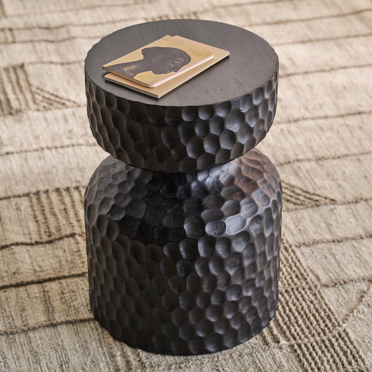 I love this little side table for its bold, tactile texture and versatility. The stained acacia finish adds warmth and richness, making it a great addition to both modern and eclectic interiors. It works well as a bedside table or an accent piece in a lounge, especially when paired with soft textiles and understated accessories. For styling, try combining it with a sleek lamp or a ceramic vase for contrast, or let its textured surface stand out by keeping surrounding décor minimal. Its sturdy yet stylish design makes it practical for use beside a sofa or armchair, offering both function and a pop of visual interest.