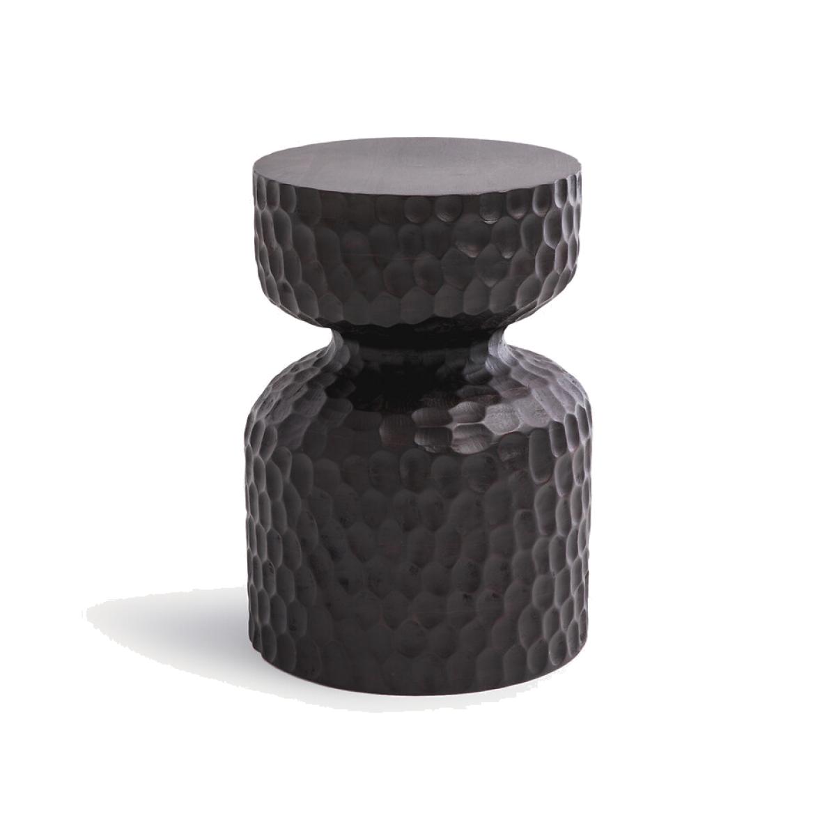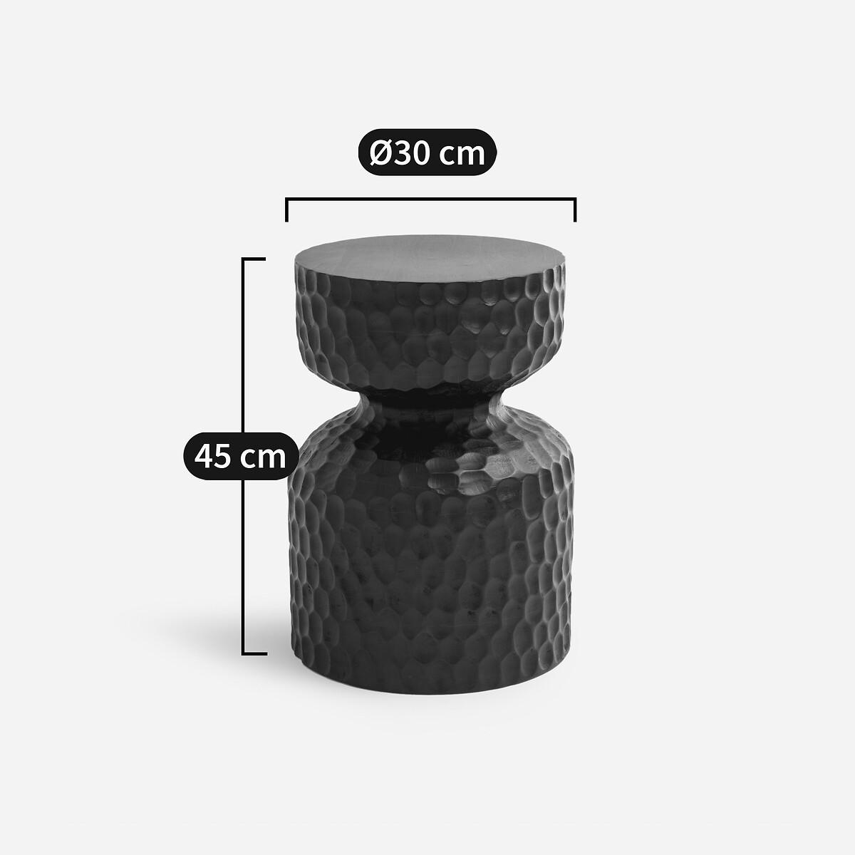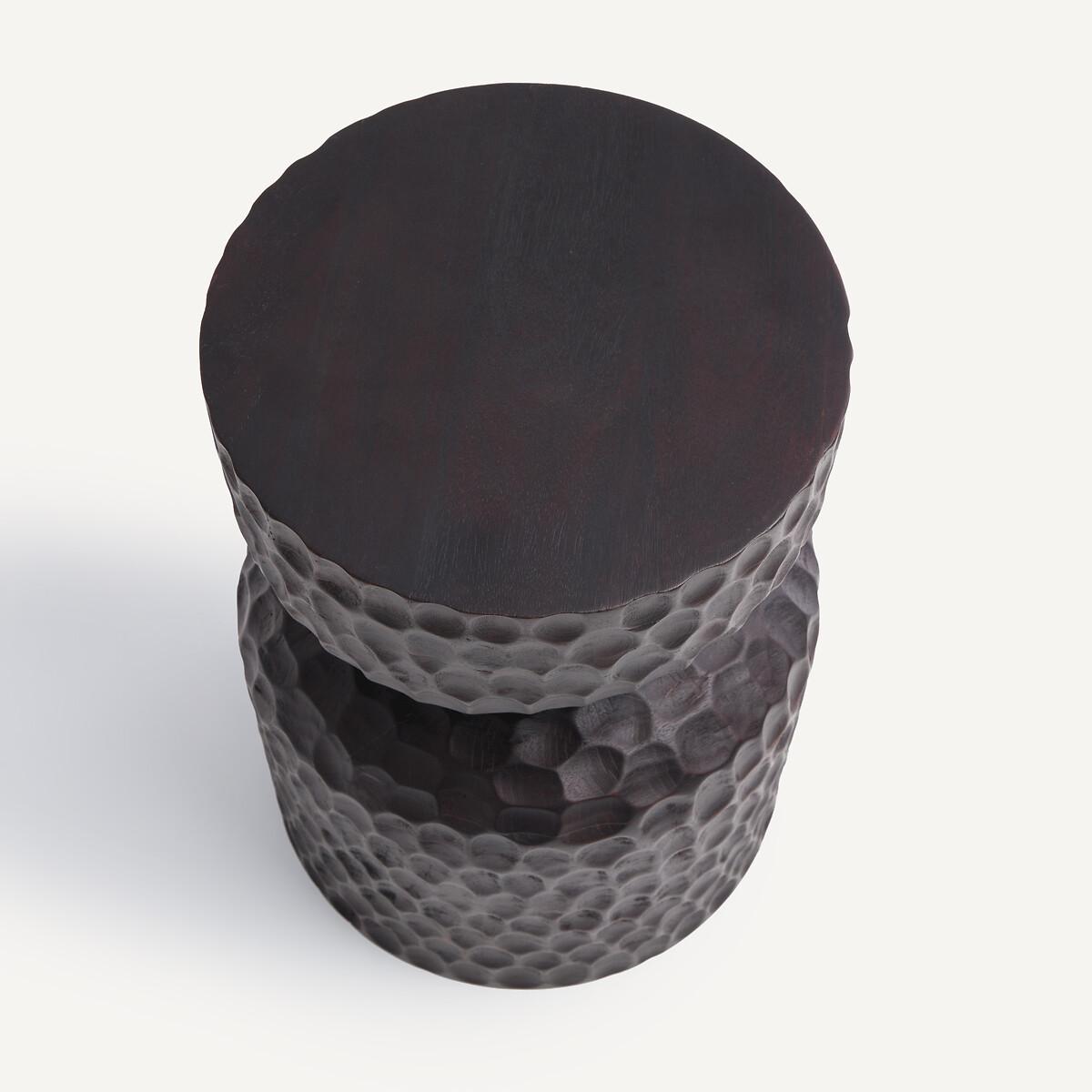 Hand-carved using a gouge, a woodworking tool used to create concave shapes in wood, this side table is a unique piece. Its irregular lines and deliberate imperfections reveal its authenticity. Like a rough sculpture carved out of a block of wood. Product Details • In stained acacia, FSC®-certified wood • Nitrocellulose varnish finish • Hand crafted: Each piece is unique. Dimensions • Diameter: 30cm • Height: 45cm • Sold pre-assembled. • WOOD FROM SUSTAINABLY MANAGED FORESTS. FSC® certified wood comes from forests that are environmentally, socially and economically well managed. Parcel Dimensions • 1 parcel • L40 x H53 x D40cm. 11kg