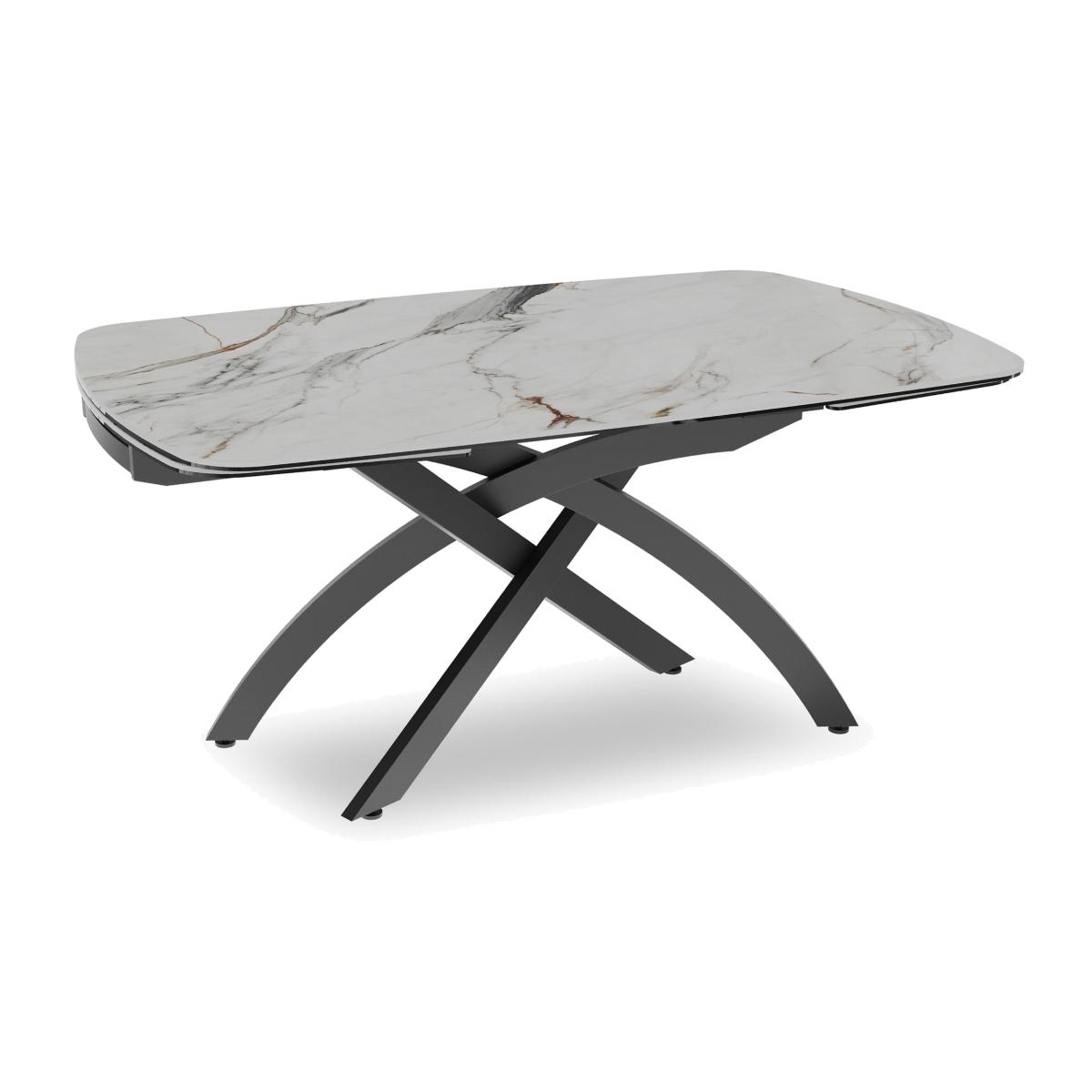 This beautiful draw leaf dining table is so easy to extend – simply pull on the table ends – and looks absolutely stunning, thanks to its gorgeous ceramic top. Only at Furniture Village. Why you'll love it Part of our Modern Dining Collection. Sleek modern style for your on-trend contemporary home. This exceptionally well-crafted extending dining table has a curved boat-shaped top. Choose from 10 beautiful ceramic finishes, including marbled ceramic. Such attention to detail – the marble patterning always matches whether the table is extended or closed. So easy to look after. Ceramic is scratch-resistant, chip-resistant and heat-resistant. Matt black lacquered metal legs are elegantly intertwined. So easy to extend – simply pull on the table ends. Available in 3 sizes. Designed and made by Akante exclusively for Furniture Village. This draw leaf extending dining table is part of our Rafa range. What you need to know 130 cm draw leaf dining table seats 4 closed and 6 when extended. 160 cm draw leaf dining table seats 6 closed and 8 when extended. 190 cm draw leaf dining table seats 8 closed and 10 when extended. Top is 3 mm ceramic layer on 6 mm glass layer. Steel legs with a lacquered finish. Please note that the ceramic table top is not 100% heatproof. We recommend using coasters and placemats at all times. Wipe clean with a damp cloth. Dry with a soft duster. Do not use abrasive cleaning products. Part of our Raul collection of urban-style modern dining room furniture. Item code: RAFATBL8MR-001