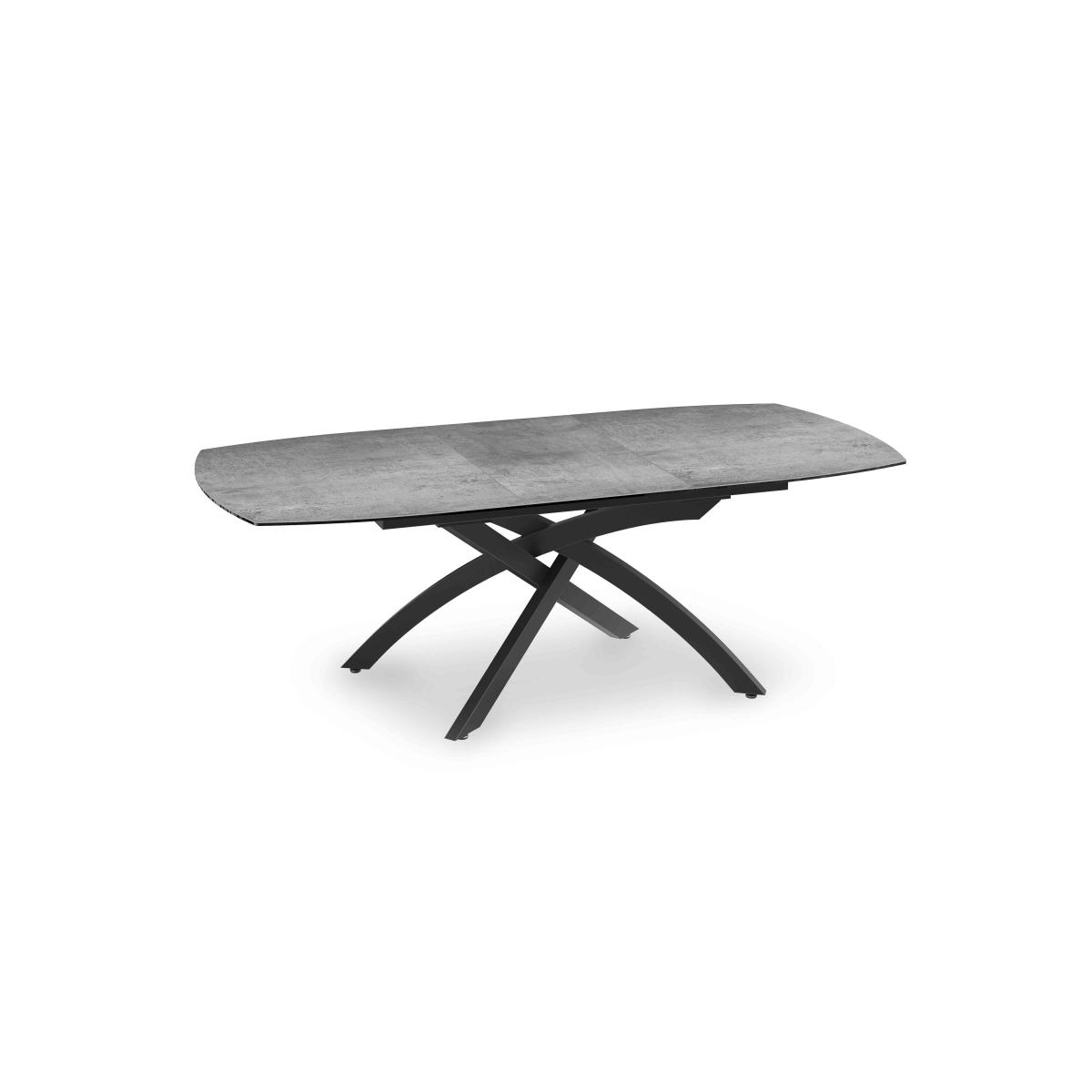 Enjoy sleek dining style in a choice of ten stunning ceramic finishes. This extending dining table comes in a choice of three sizes and extends with a clever pop-up leaf. Only at Furniture Village. Why you'll love it Part of our Modern Dining Collection. Sleek modern style for your on-trend contemporary home. This exceptionally well-crafted extending dining table has a curved boat-shaped top. Choose from 10 beautiful ceramic finishes, including marbled ceramic. Such attention to detail – the marble patterning always matches whether the table is extended or closed. So easy to look after. Ceramic is scratch-resistant, chip-resistant and heat-resistant. Matt black lacquered metal legs are elegantly intertwined. To extend, simply pull on the table ends and an extra leaf pops up into place. Available in 3 sizes. Designed and made by Akante exclusively for Furniture Village. This pop-up extending dining table is part of our Rafa range. What you need to know 130 cm pop-up dining table seats 4 closed and 6 when extended. 160 cm pop-up dining table seats 6 closed and 8 when extended. 200 cm pop-up dining table seats 8 closed and 10 when extended. Top is 3 mm ceramic layer on 6 mm glass layer. Steel legs with a lacquered finish. Please note that the ceramic table top is not 100% heatproof. We recommend using coasters and placemats at all times. Wipe clean with a damp cloth. Dry with a soft duster. Do not use abrasive cleaning products. Part of our Rafa collection of distinctive modern dining room furniture. Item code: RAFATB10AR-001