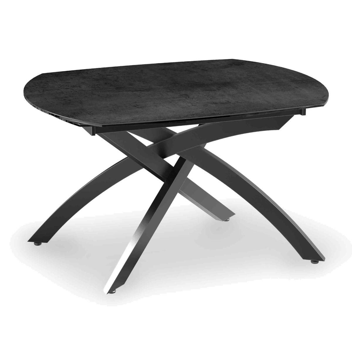 You can choose from ten beautiful ceramic finishes for our striking Rafa swivel dining table. With its elegant intertwined leg design and rotating top, it definitely brings the wow factor. Why you'll love it Part of our Modern Dining Collection. Sleek modern style for your on-trend contemporary home. This exceptionally well-crafted extending dining table has a curved boat-shaped top. Choose from 10 beautiful ceramic finishes, including marbled ceramic. Such attention to detail – the marble patterning always matches whether the table is extended or closed. So easy to look after. Ceramic is scratch-resistant, chip-resistant and heat-resistant. Matt black lacquered metal legs are elegantly intertwined. The table top of this swivel dining table rotates to extend. Available in 3 sizes. Only at Furniture Village. This swivel extending dining table is part of our Rafa range. What you need to know Small swivel dining table seats 4 closed and 6 when extended. Medium swivel dining table seats 6 closed and 8 when extended. Large swivel dining table seats 8 closed and 10 when extended. Top is 3 mm ceramic layer on 6 mm glass layer. Steel legs with a lacquered finish. Please note that the ceramic table top is not 100% heatproof. We recommend using coasters and placemats at all times. Wipe clean with a damp cloth. Dry with a soft duster. Do not use abrasive cleaning products. Part of our Rafa collection of distinctive modern dining room furniture.