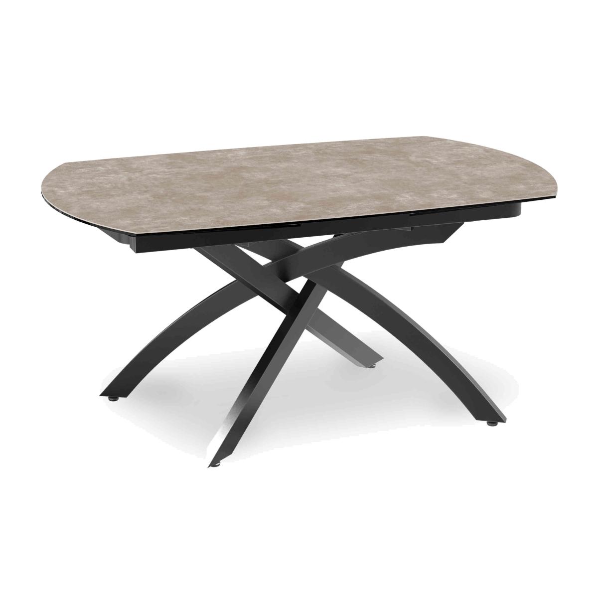 You can choose from ten beautiful ceramic finishes for our striking Rafa swivel dining table. With its elegant intertwined leg design and rotating top, it definitely brings the wow factor. Why you'll love it Part of our Modern Dining Collection. Sleek modern style for your on-trend contemporary home. This exceptionally well-crafted extending dining table has a curved boat-shaped top. Choose from 10 beautiful ceramic finishes, including marbled ceramic. Such attention to detail – the marble patterning always matches whether the table is extended or closed. So easy to look after. Ceramic is scratch-resistant, chip-resistant and heat-resistant. Matt black lacquered metal legs are elegantly intertwined. The table top of this swivel dining table rotates to extend. Available in 3 sizes. Only at Furniture Village. This swivel extending dining table is part of our Rafa range. What you need to know Small swivel dining table seats 4 closed and 6 when extended. Medium swivel dining table seats 6 closed and 8 when extended. Large swivel dining table seats 8 closed and 10 when extended. Top is 3 mm ceramic layer on 6 mm glass layer. Steel legs with a lacquered finish. Please note that the ceramic table top is not 100% heatproof. We recommend using coasters and placemats at all times. Wipe clean with a damp cloth. Dry with a soft duster. Do not use abrasive cleaning products. Part of our Rafa collection of distinctive modern dining room furniture.