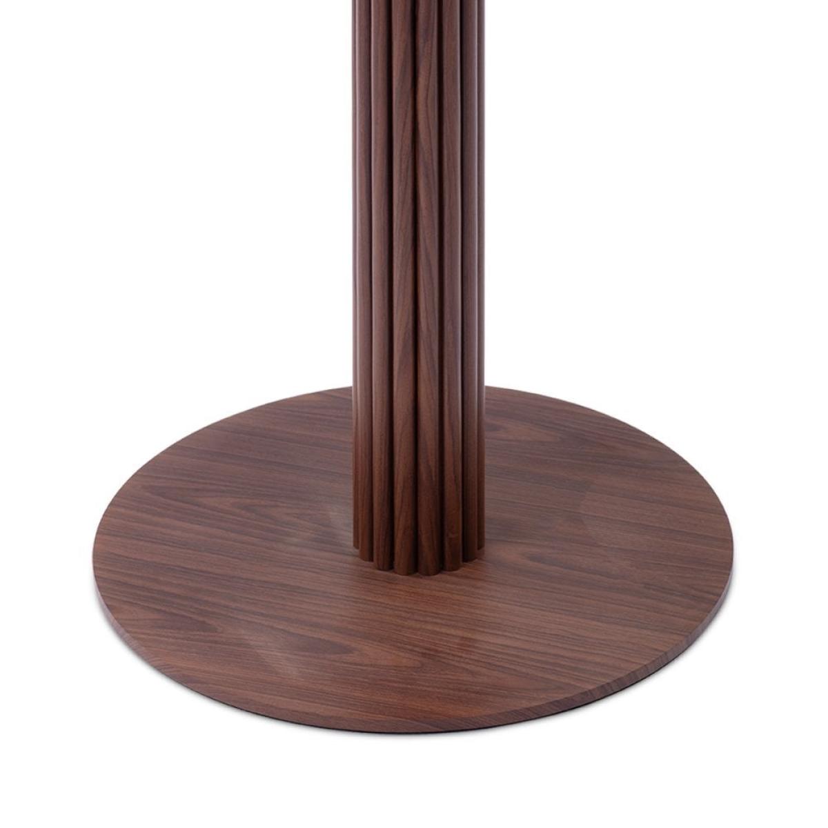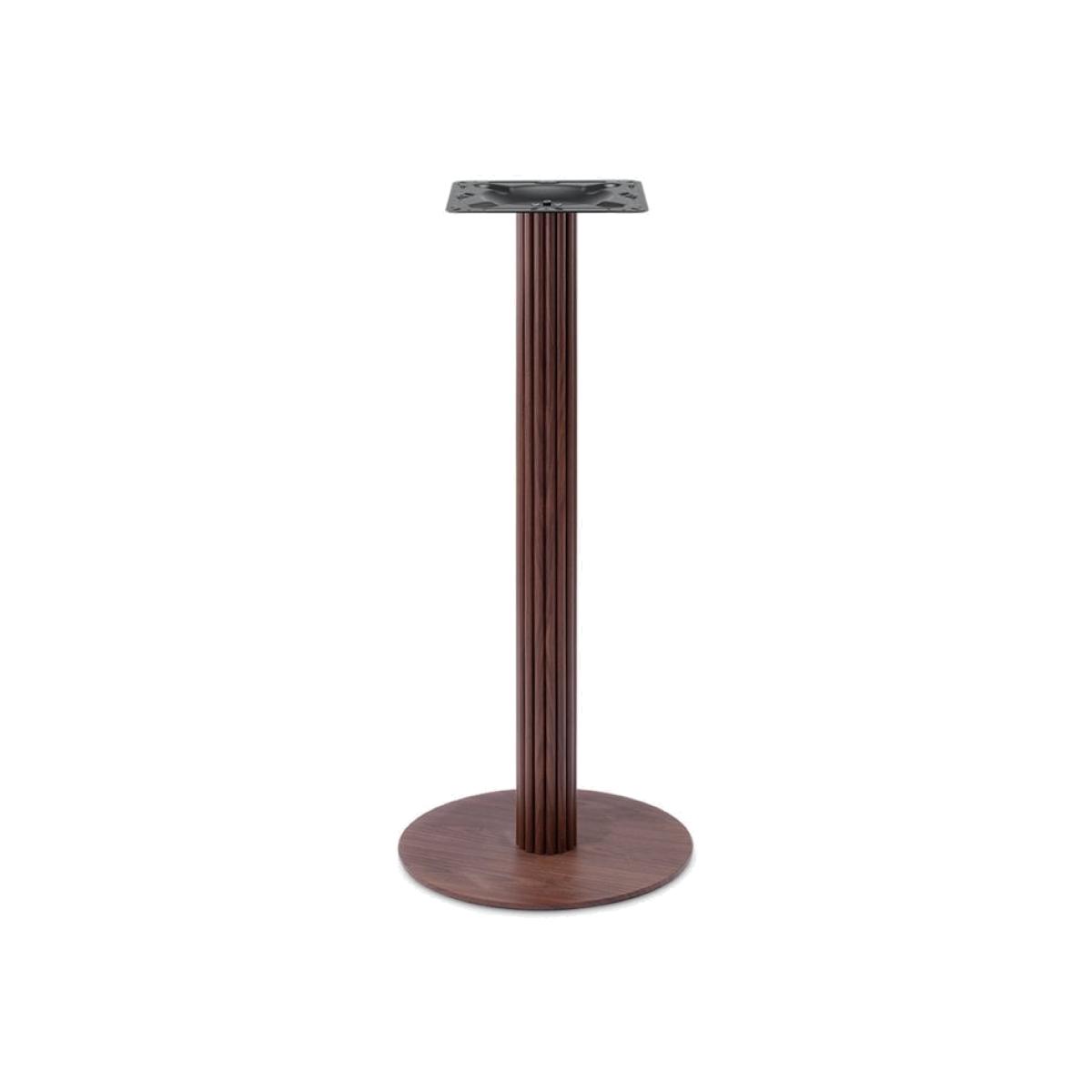 This stylish and clean bar table base allows you to attach a tabletop of your choice. Made from strong and durable metal in a walnut wood effect finish, this simple base has one pillar and circular base. The metal construction allows for regular and heavy use without the worry of damage or corrosion - giving you long-lasting furniture for indoor dining.