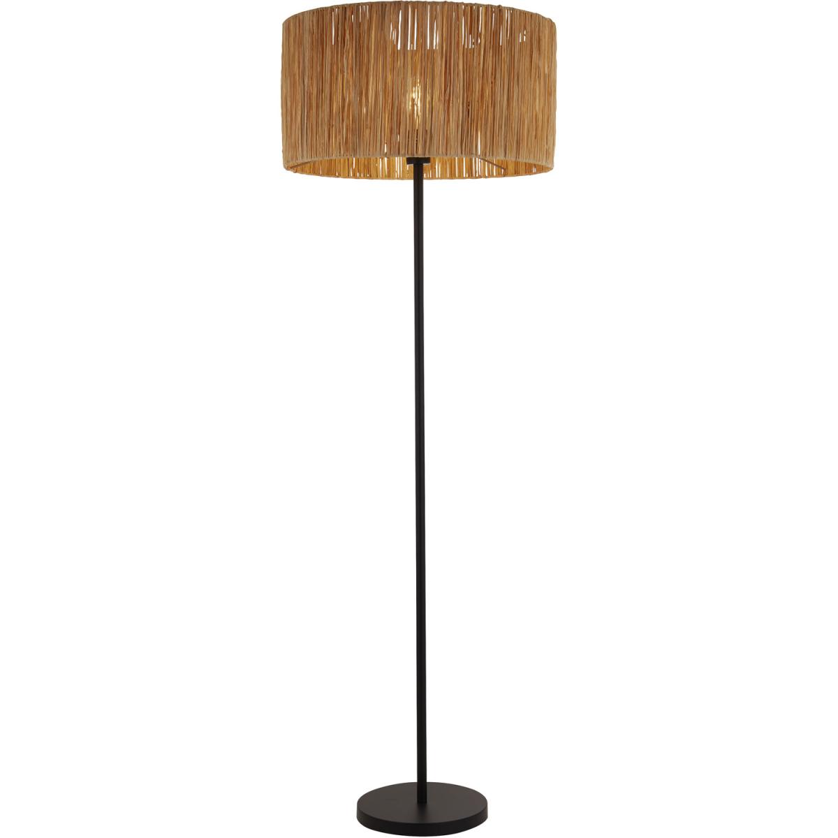 Raffia Finish Floor Lamp with Black Base - Brown