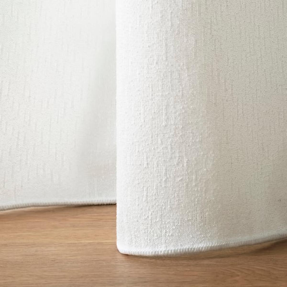 * Premium, heavyweight polyester composition * Textured boucle design * Available in a selection of header options * Coordinating Made to Measure Fabric by the Metre available to purchase separately Add warmth and texture to your home with the Raffia Made to Measure Voile Curtain. This premium, heavyweight polyester fabric features a textured boucle design, creating a cosy yet contemporary feel. Ideal for bespoke curtains that provide privacy while letting in soft light, it’s available in a variety of header styles for a custom, polished finish.