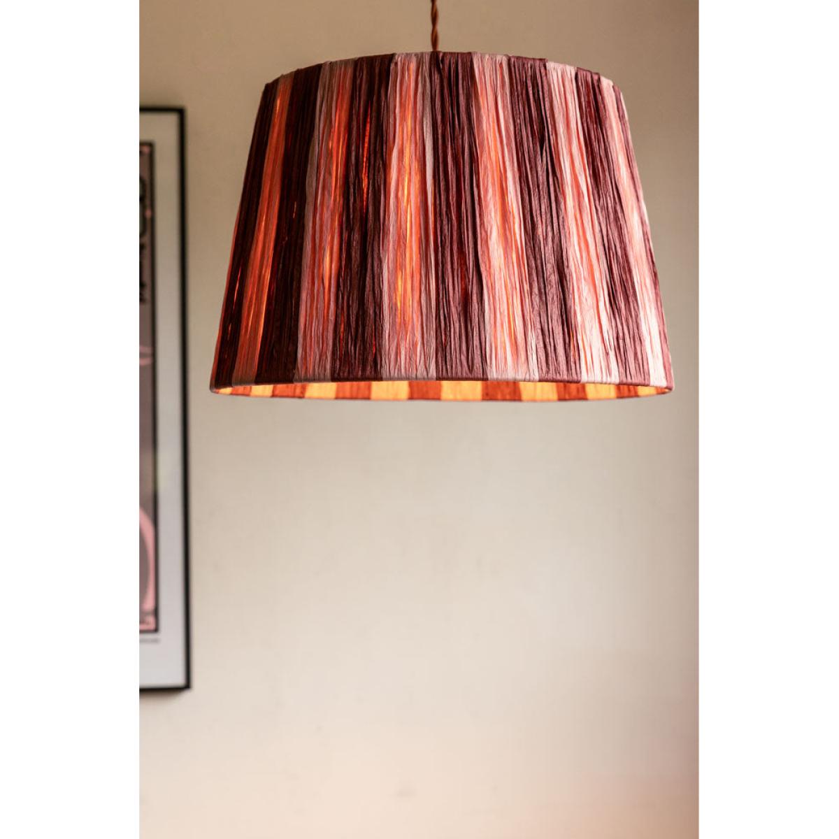 Meet the Raffia Pink & Red Stripe Lampshade – the statement piece your quirky and unusual lighting has been waiting for. Woven from raffia, this ceiling lightshade brings all the laid-back, boho vibes with a natural, textural finish that feels effortlessly cool. The bold red and playful pink stripes alternate their way around the shade, giving it a modern twist that’s equal parts chic and cheerful. Pop it on a lamp and watch it instantly brighten up your space. It’s the perfect mix of earthy and fun – natural raffia keeps it grounded, while those stripes add just the right amount of sass. - Raffia Pink & Red Stripe Lampshade - Measures: W35cm x H23cm - Materials: Raffia - Handle with care and wipe clean with a soft dry cloth only. Ensure the light is unplugged or switched off, and allowed to cool before cleaning.