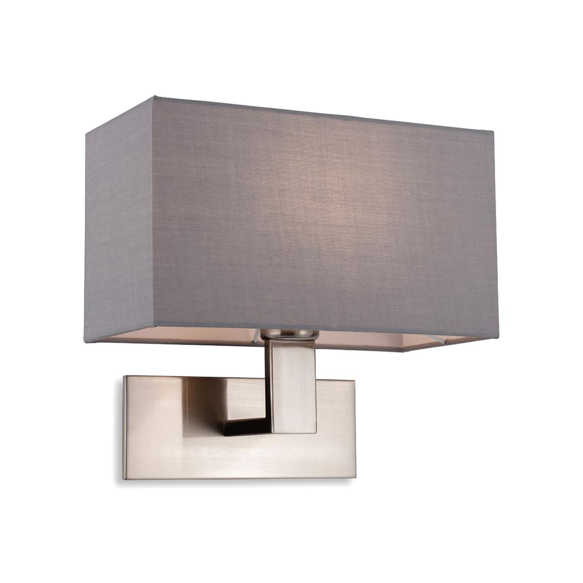 Raffles Wall Lamp Brushed Steel Rectangle Grey Shade - Brushed Steel with Grey Shade