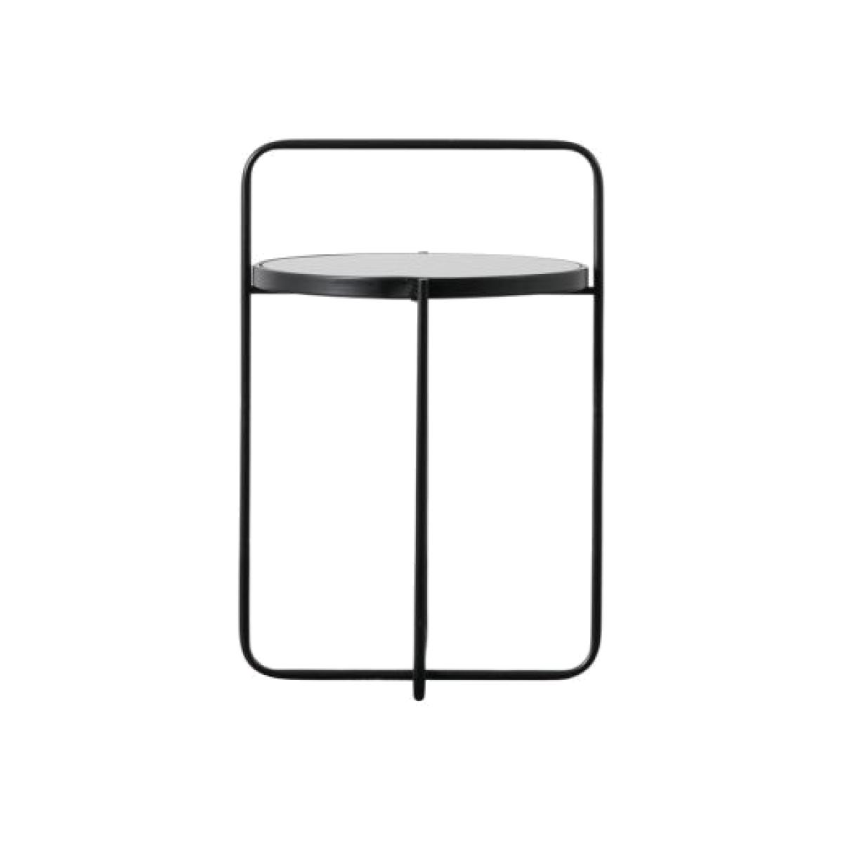 Add a contemporary touch to a room with this stylish side table. The stunning design features a continuation of one section of the metal base, up and over the table to create a ‘handle’ effect. There is a matching coffee table, and both are also available in grey and white. Material: Iron. Colour/Finish: Black.