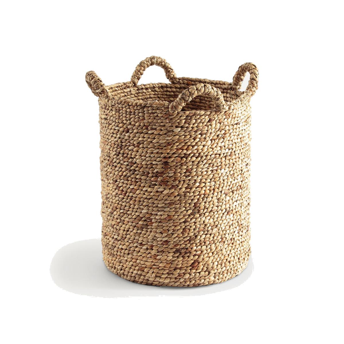 The Raga woven storage basket. Product Details • Made from supple, woven water hyacinth • 4 handles • Artisanal craftsmanship. Dimensions • Ø35 x H55cm