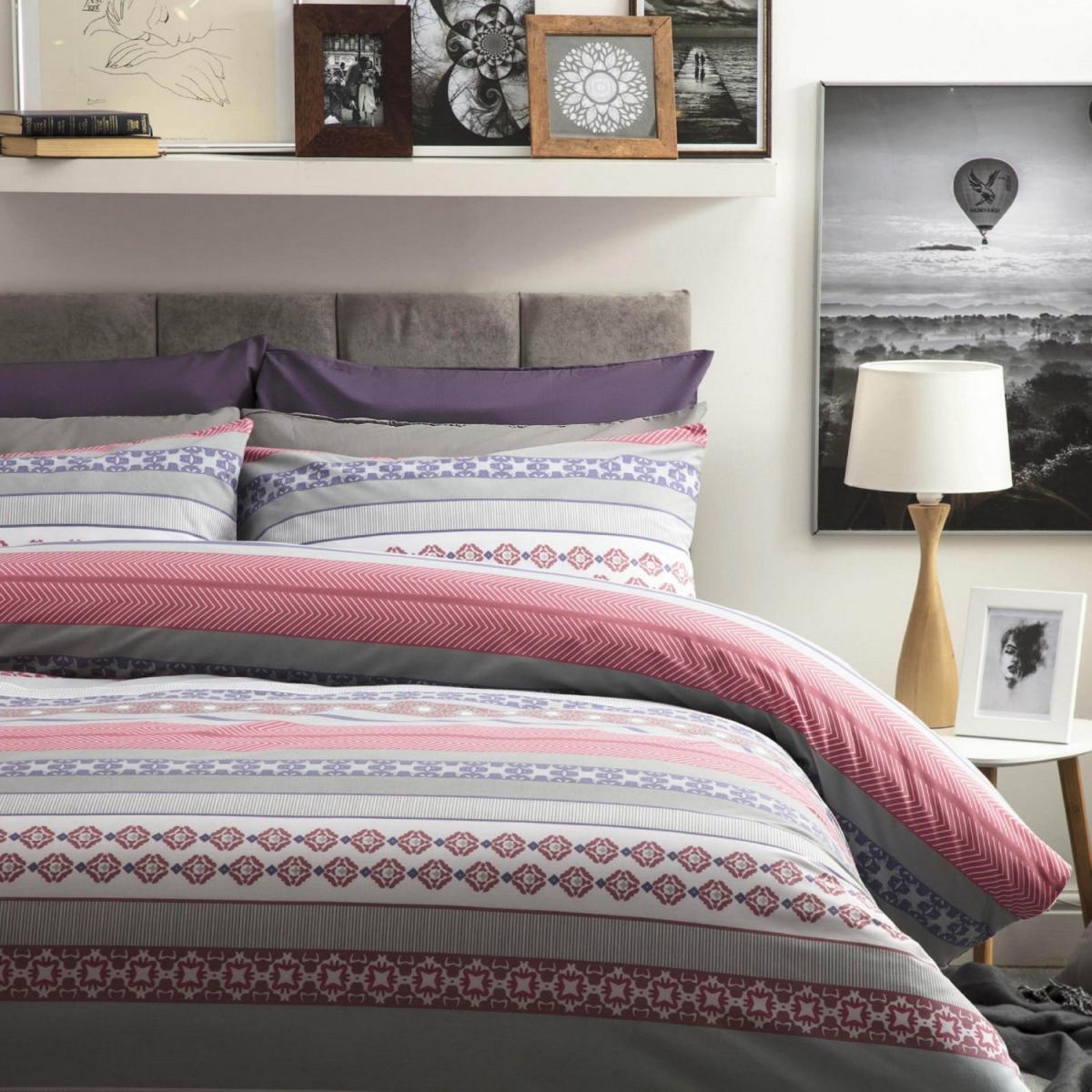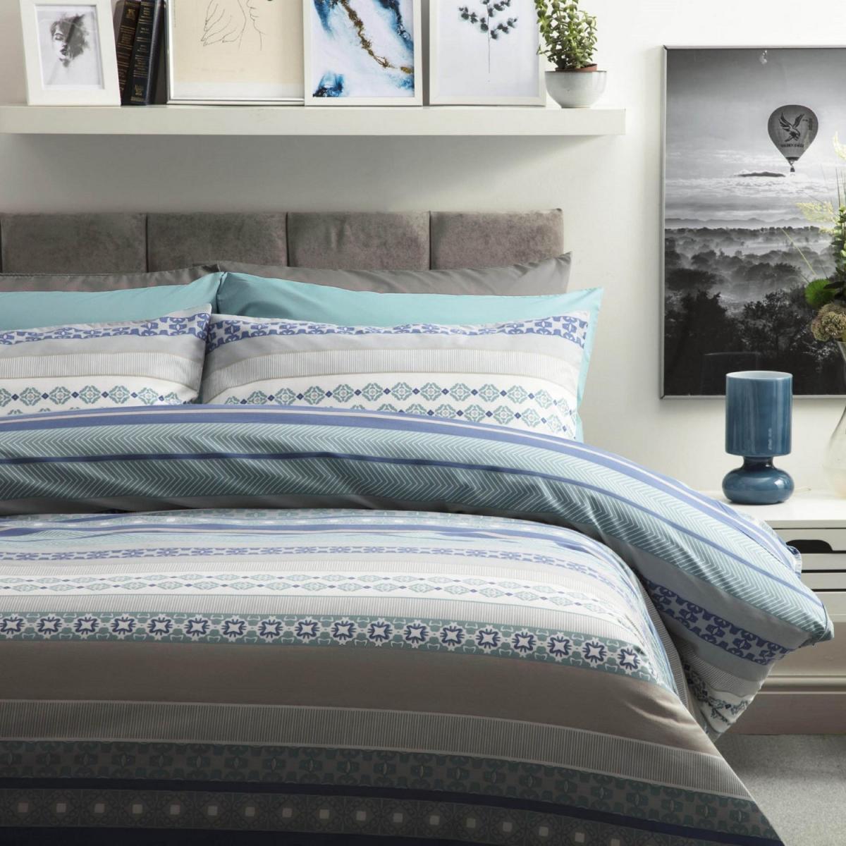 Material 50 Cotton, 50 Polyester. Thread Count 150. 1 Duvet Cover and 2 Housewife Pillowcases (twin size includes only 1 pillowcase). A smart geometric design with a cool Aztec feel, a truly modern design. Machine washable at 40. C, Do not bleach. Tumble dry or drip dry.