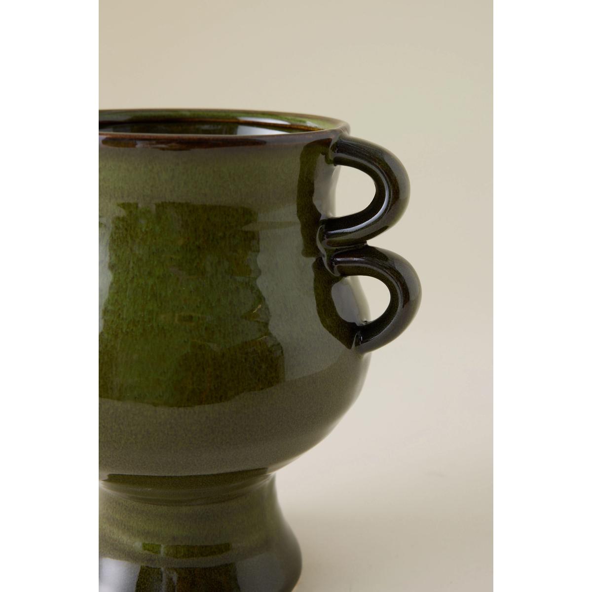 I love the Raia flower pot for its bold, sculptural presence and rich green glaze, which makes it a versatile statement piece. It works particularly well in eclectic, boho, or modern interiors where its organic shape can stand out against more neutral or minimalist backgrounds. Practical styling tips include pairing it with a variety of tropical or leafy plants to emphasise its earthy tones, or using it as a standalone sculptural piece on a console table or open shelving for added visual interest. Due to its size and colour, it can also serve as a focal point in corners or alongside other textured materials, helping to introduce colour and personality into any space.
