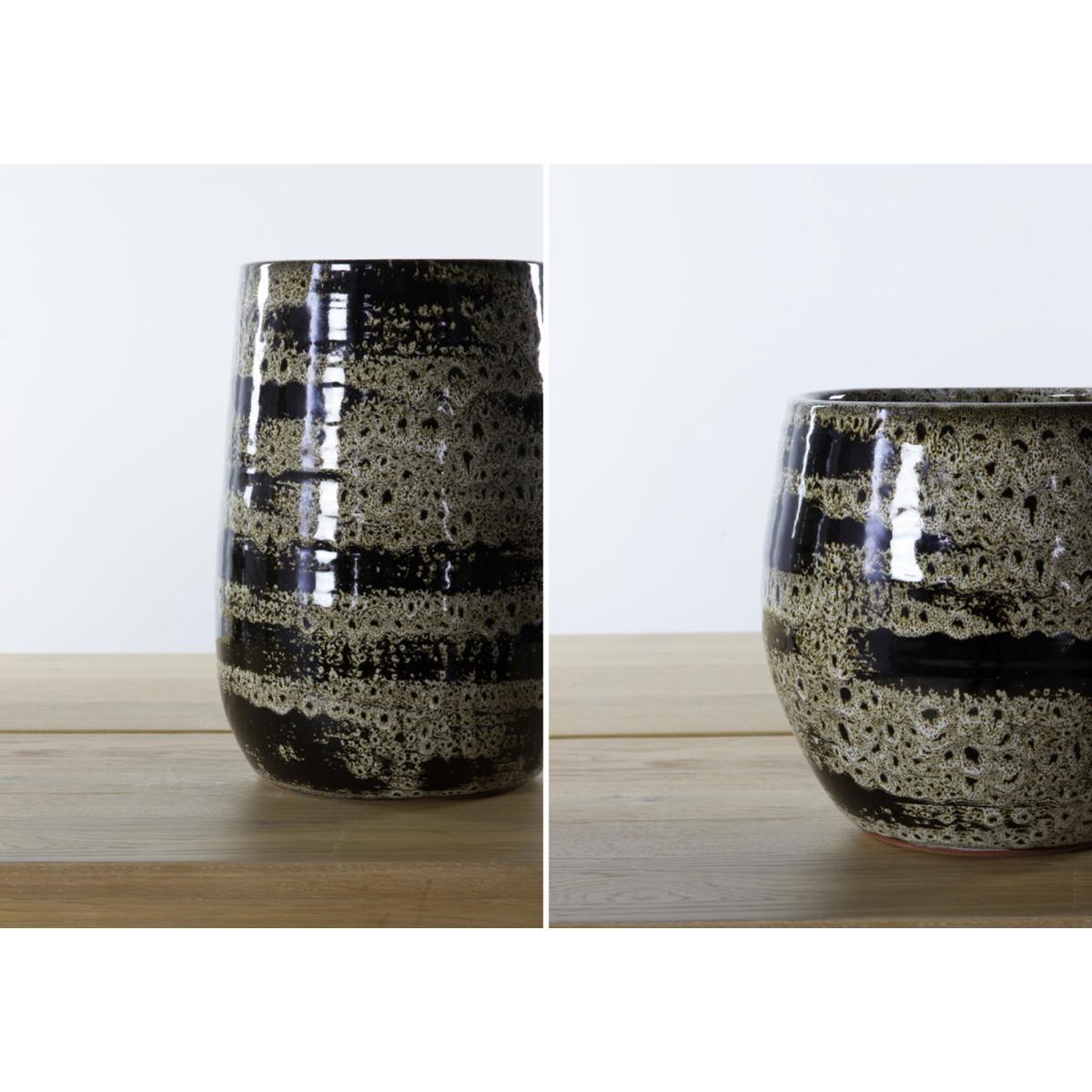 Drawing inspiration from ever-trendy 70's style studio pottery, the Raiden range features an array of Black Gloss glazed finishes accented heavily with natural toned patternings and an artisanal style.