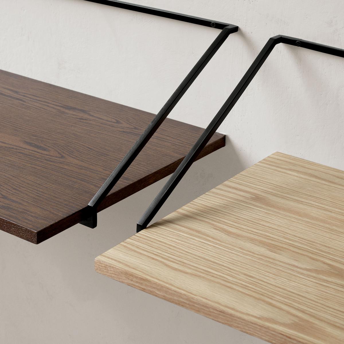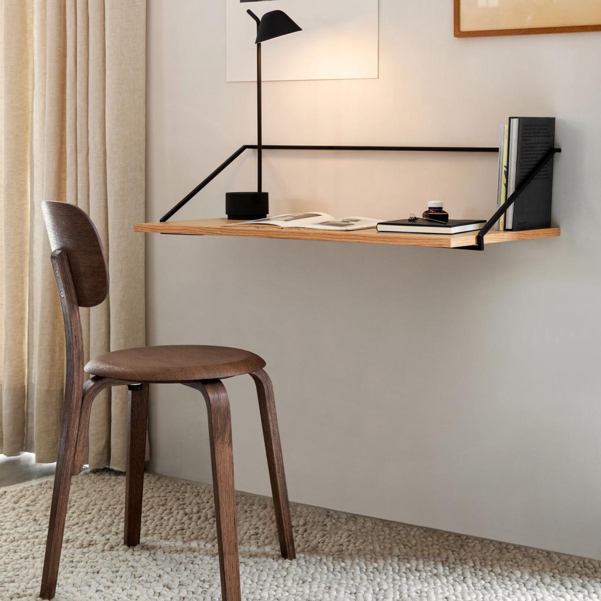 The Rail wall desk, created by Japanese designer Keiji Ashizawa, was inspired by the world of architecture. It's composed of a lightweight black steel base, inspired by the metal handrails found in stairwells, and also features a tactile wooden shelf. Elegantly minimalist, Rail fits perfectly into spaces to create a discreet and sophisticated working spot. With its compact dimensions, this corner office can be installed anywhere: entrance, lounge, bedroom. You'll have the ideal workspace for setting up your laptop, reading and working. Rail can also be used as a console table or dressing table.